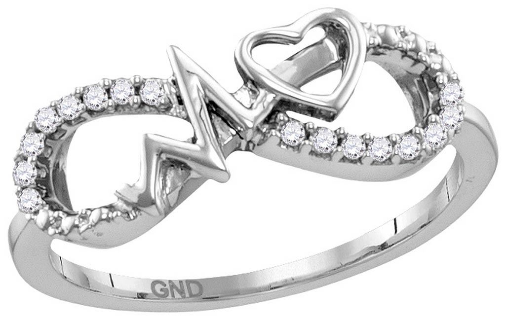 Sterling Silver Womens Round Natural Diamond Infinity H **|**|** Sterling Silver Womens Round Natural Diamond Infinity Heartbeat Fashion Ring 1/10 Cttw