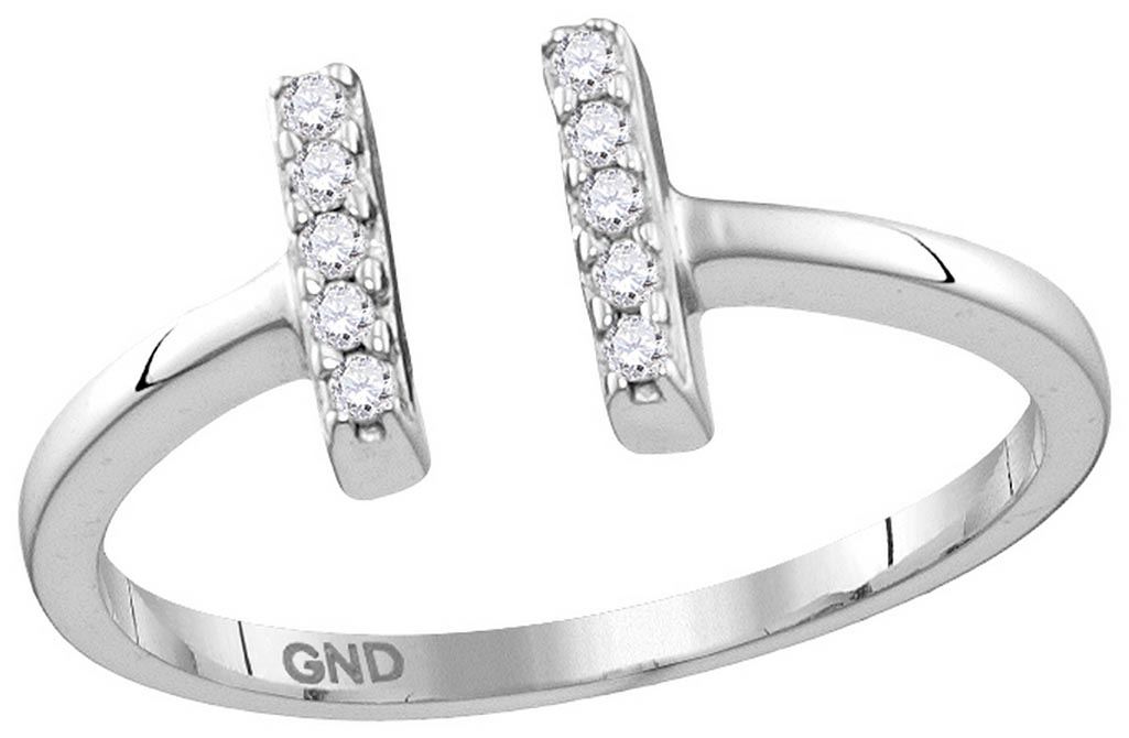 Sterling Silver Womens Round Natural Diamond Open Paral **|**|** Sterling Silver Womens Round Natural Diamond Open Parallel Bar Fashion Band Ring 1/10 Cttw