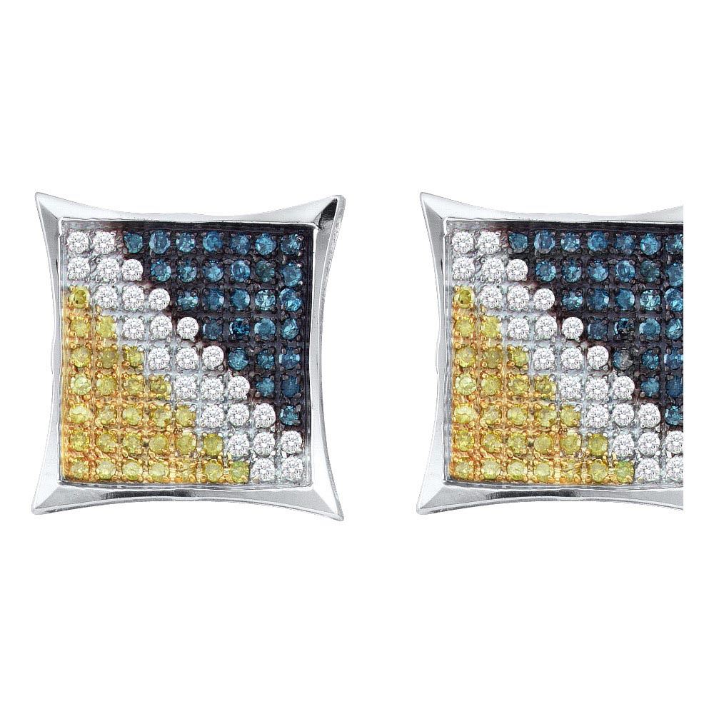 Sterling Silver Womens Yellow Blue Colored Diamond Squa **|**|** Sterling Silver Womens Yellow Blue Colored Diamond Square Cluster Earrings 1/6 Cttw