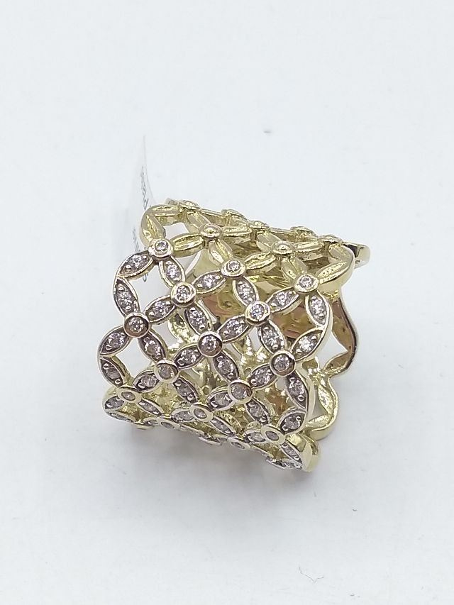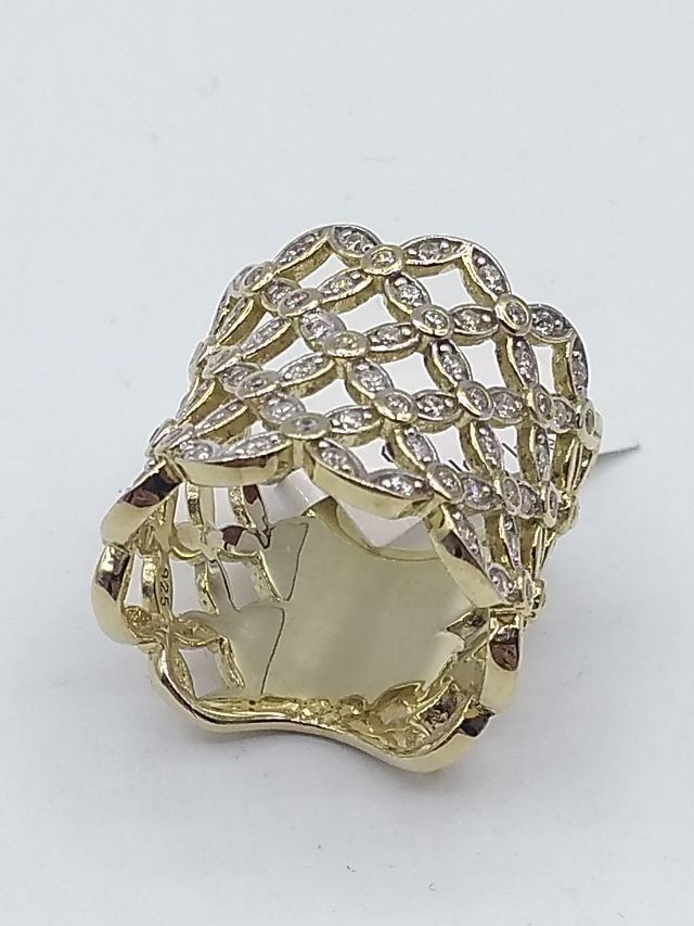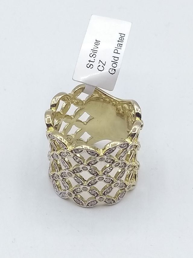 Sterling Silver Yellow Gold plated Cubic zirconia Ring, 71 CZ stones, With appraisal of $1065.00