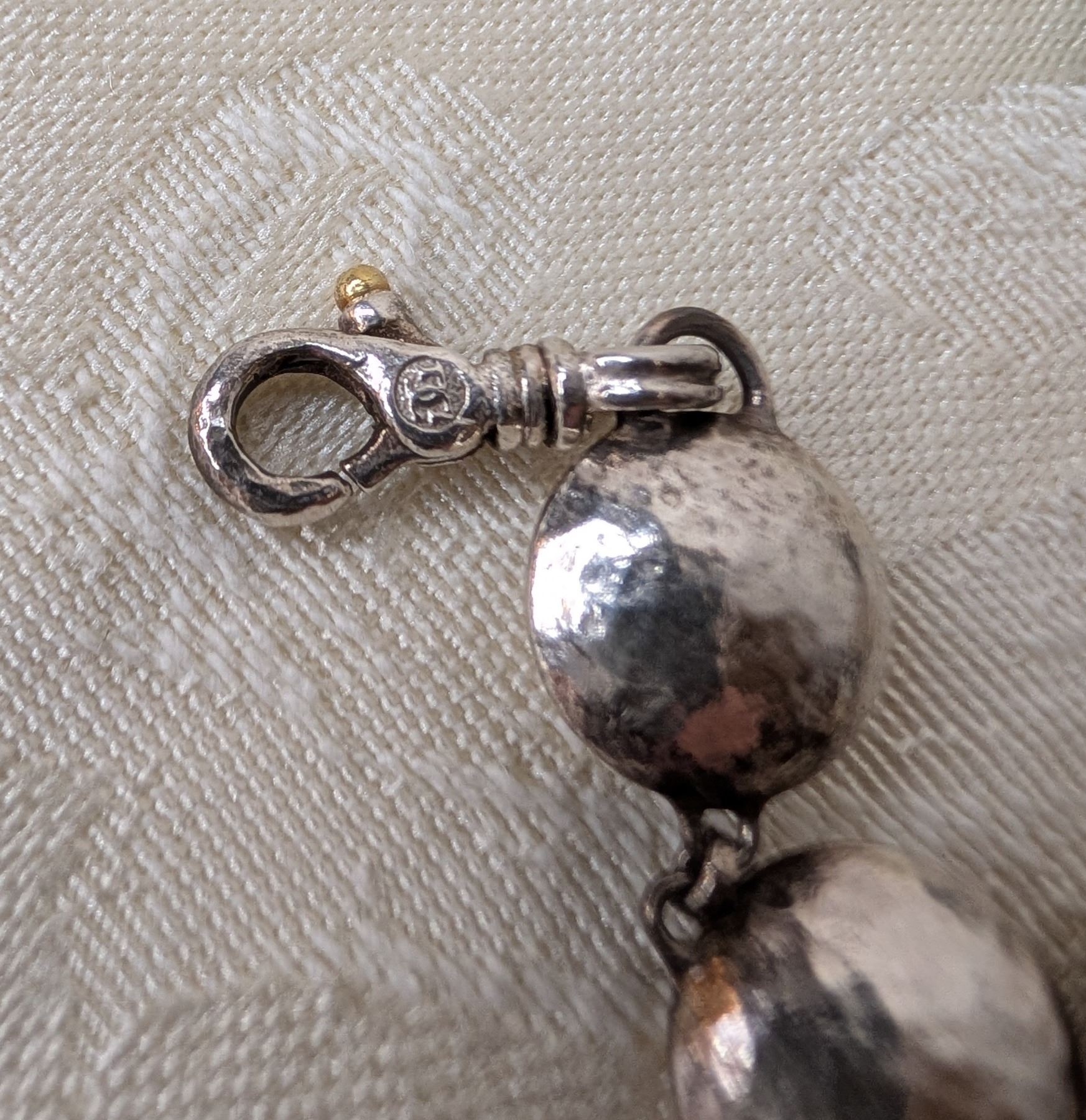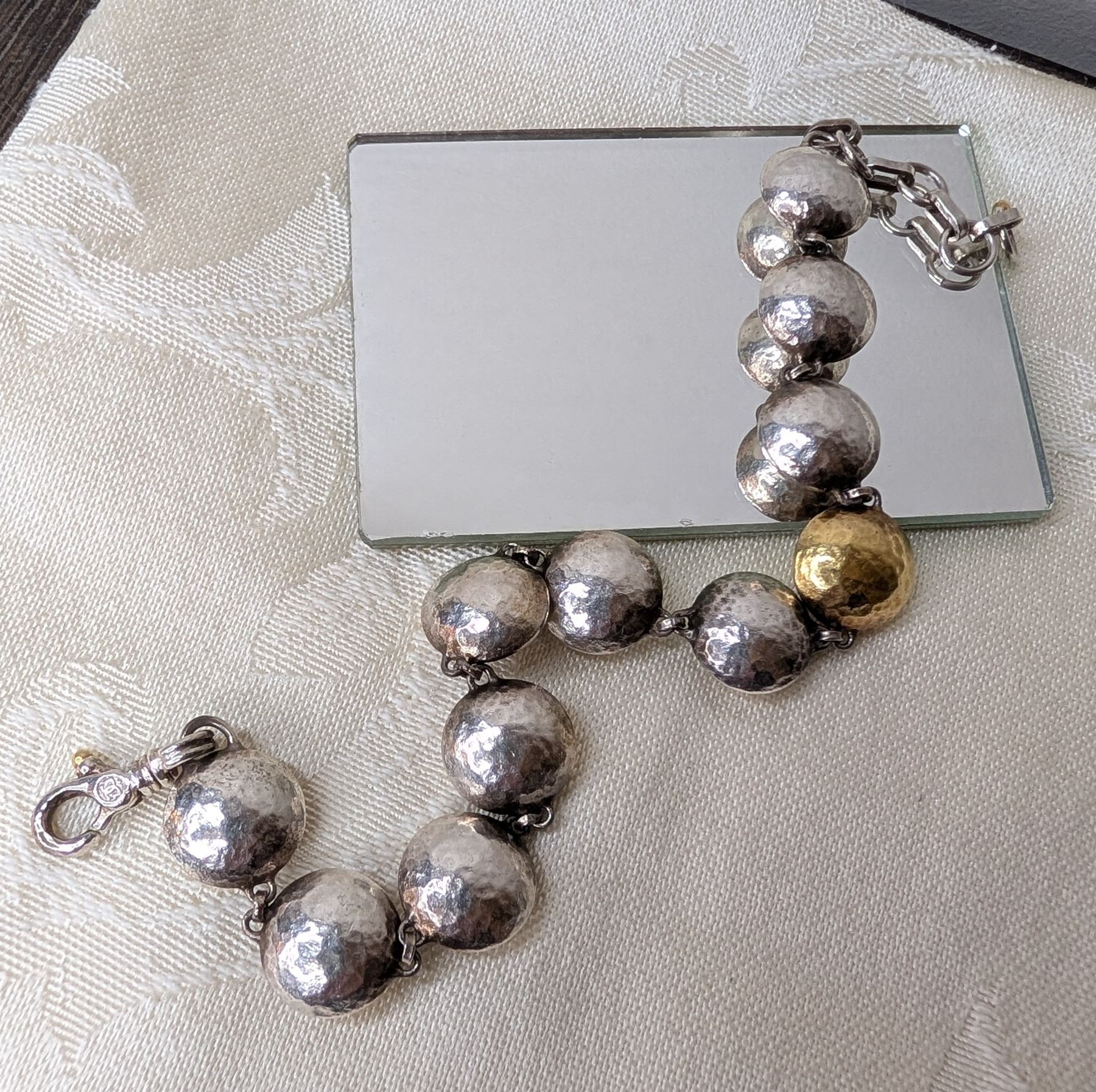 Sterling and 18k gold hammered puffed link bracelet stamped and marked