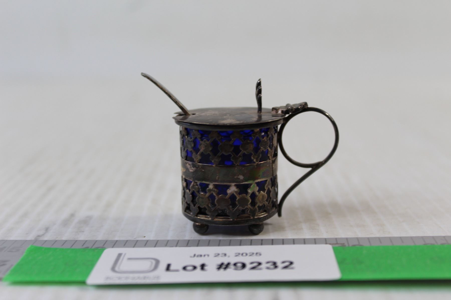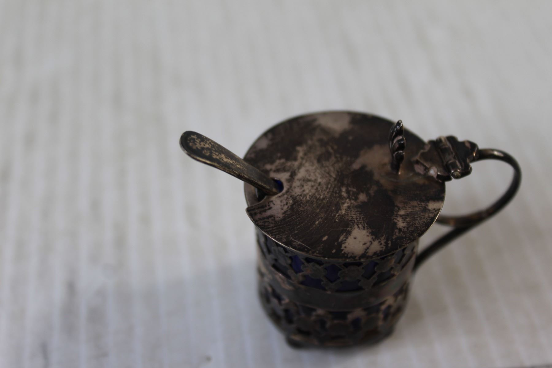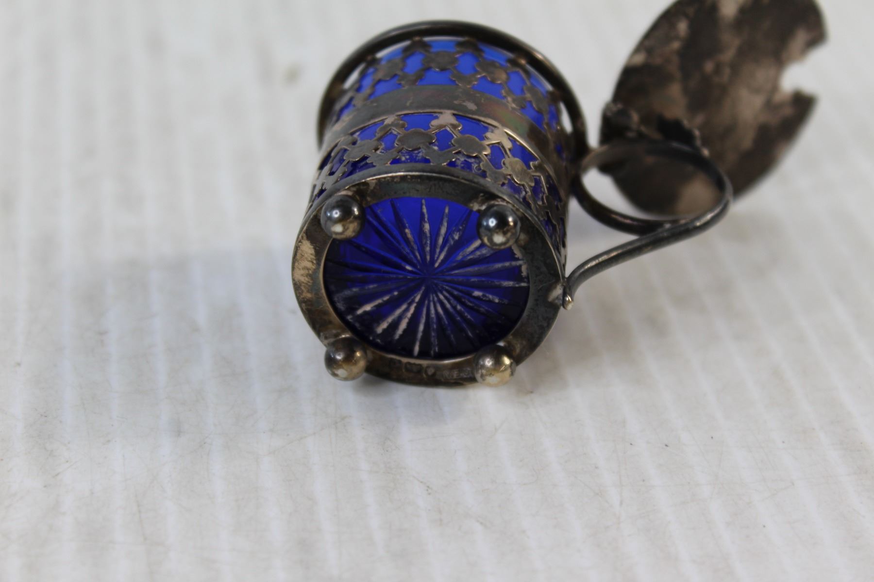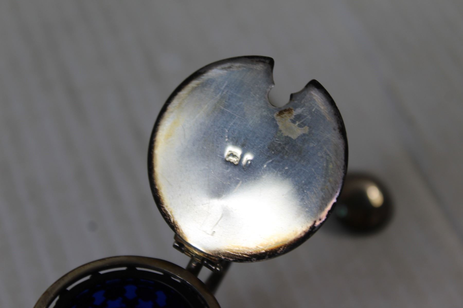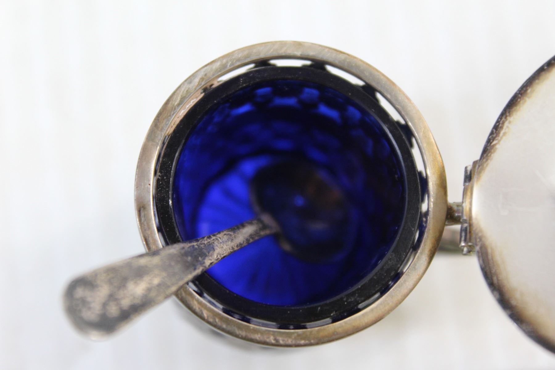 Sterling Silver and Blue Colbalt Open Salt With Spoon
