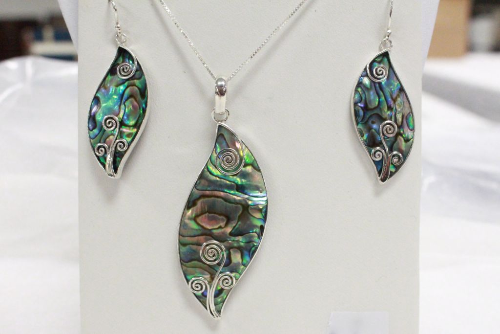 Sterling Silver and Genuine Abalone Necklace/Pendant and Earrings