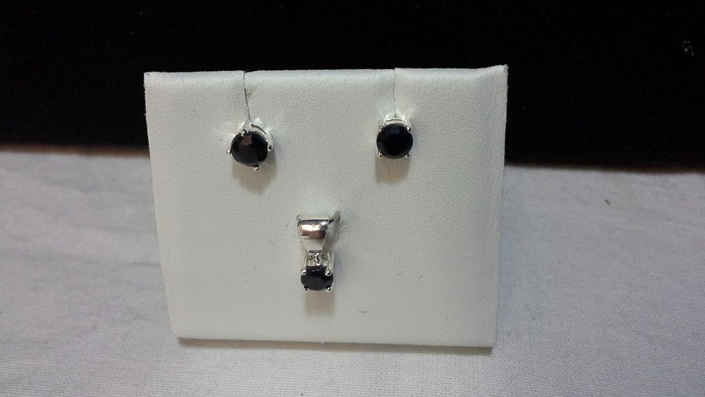 Sterling Silver and Genuine Sapphire Earrings and Pendant