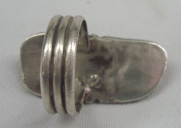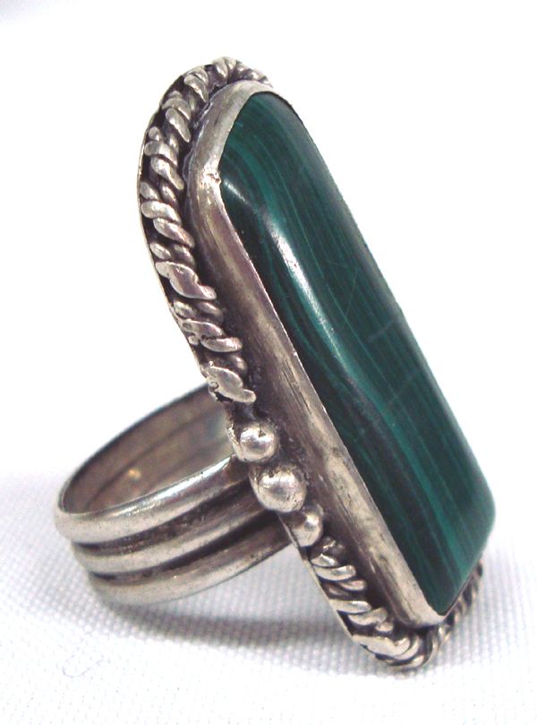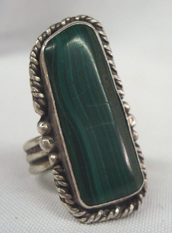 Sterling Silver and Green Malachite Ring. Silver ring with lovely large malachite stone. The ring size is 12.25 and the setting measures 1.75'' x 0.75'' edge to edge.