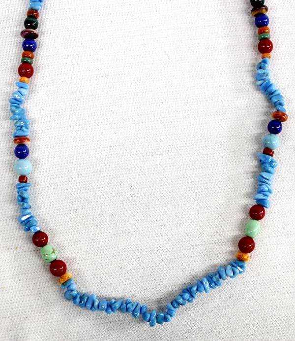 Sterling Silver and Multi-Stone Necklace, adjustable length, measures 18''L end to end, includes turquoise, gaspeite, lapis, coral, jasper, orange shell, angel coral, and malachite