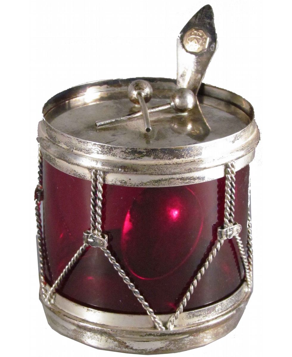 Sterling Silver and Ruby Glass Mustard Jar with monogramed sterling silver spoon. Excellent condition. 3 inch diameter X 3 inches tall.
