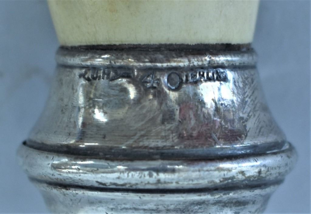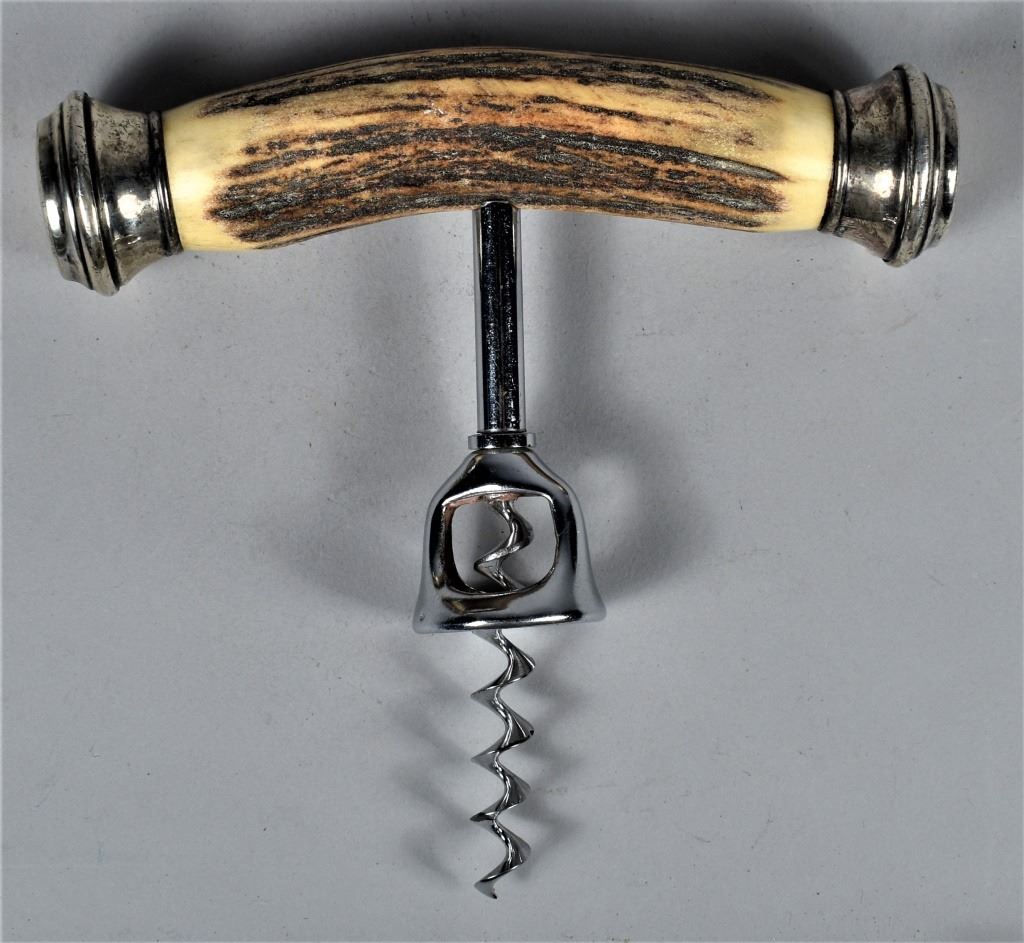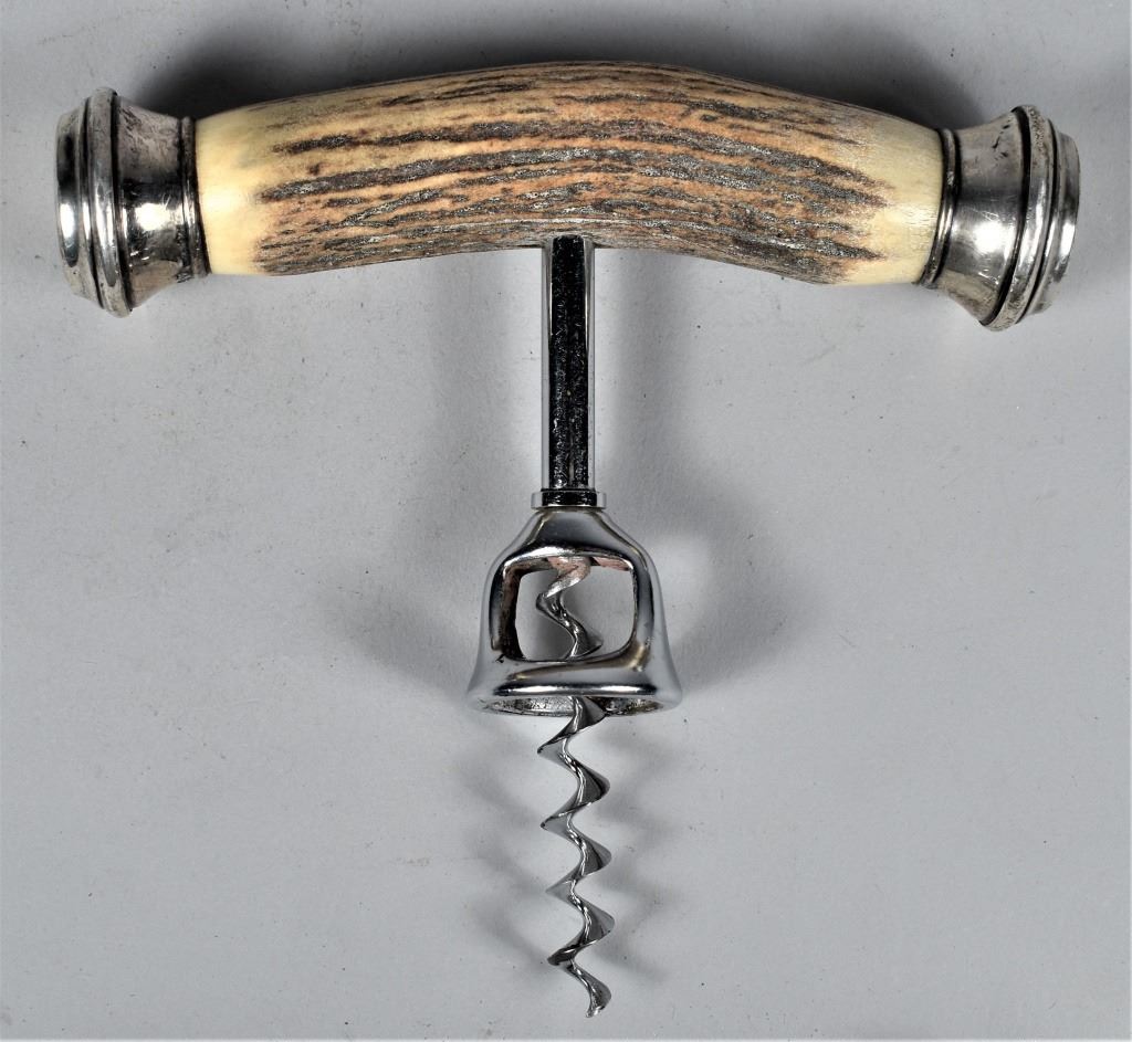 Sterling Silver and Stag Handle Cork Screw. Silver end caps measuring 9/16 inch on each side marked J.H Sterling 40. 5 3/4 inches across.