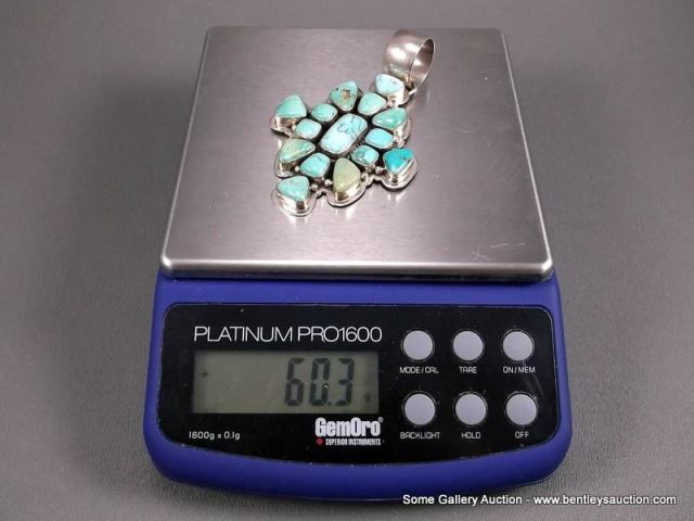 Sterling Silver and Turquoise Pendant-Marked R. Bennett Weight: 60.3 Grams Retail: $1,285.00