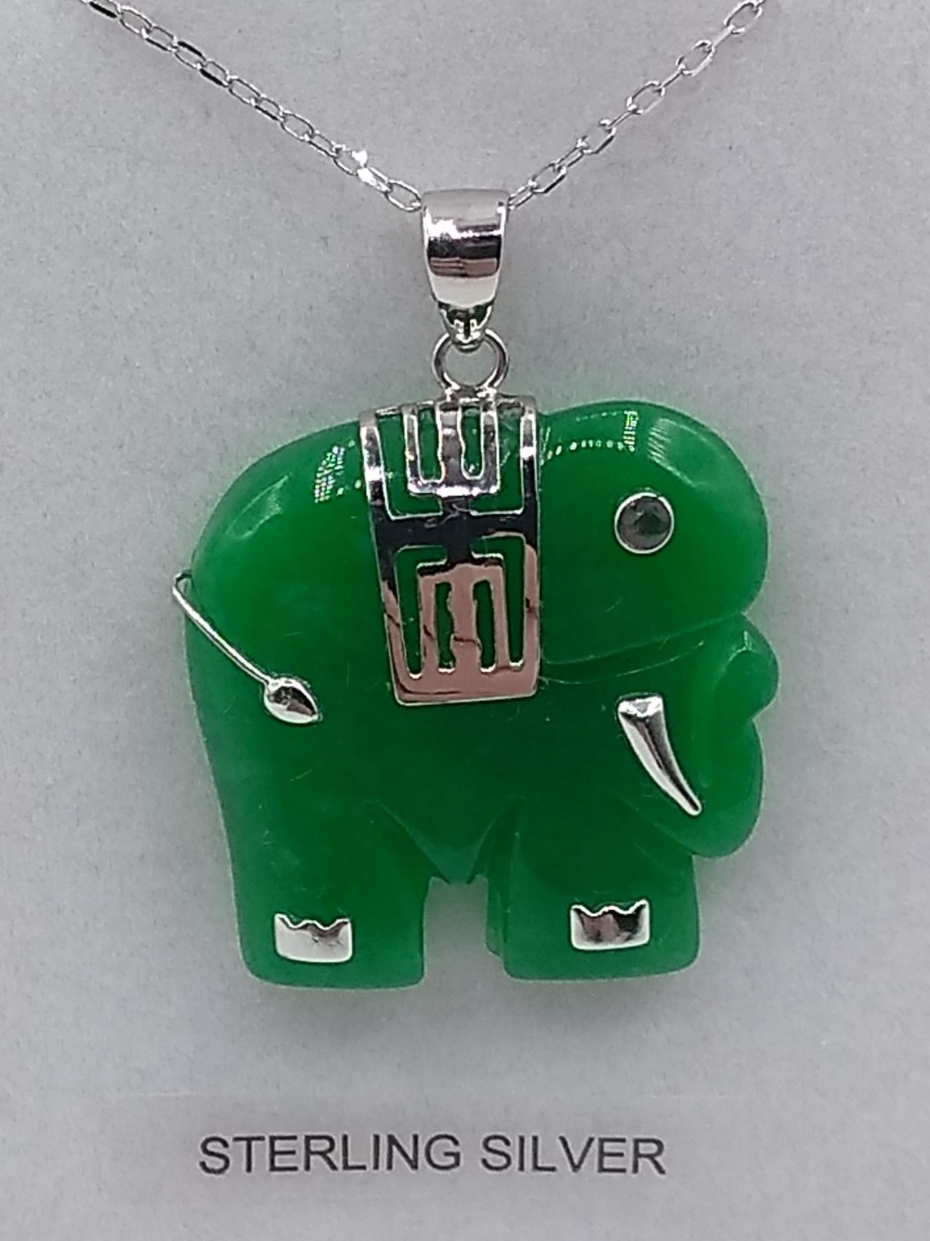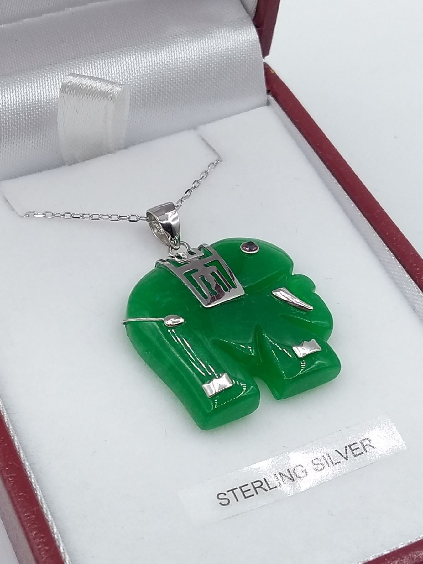 Sterling Silver genuine Jadeite (14.77cts) & Synthetic Ruby "Elephant" Pendant with Sterling chain, W/A $820.00