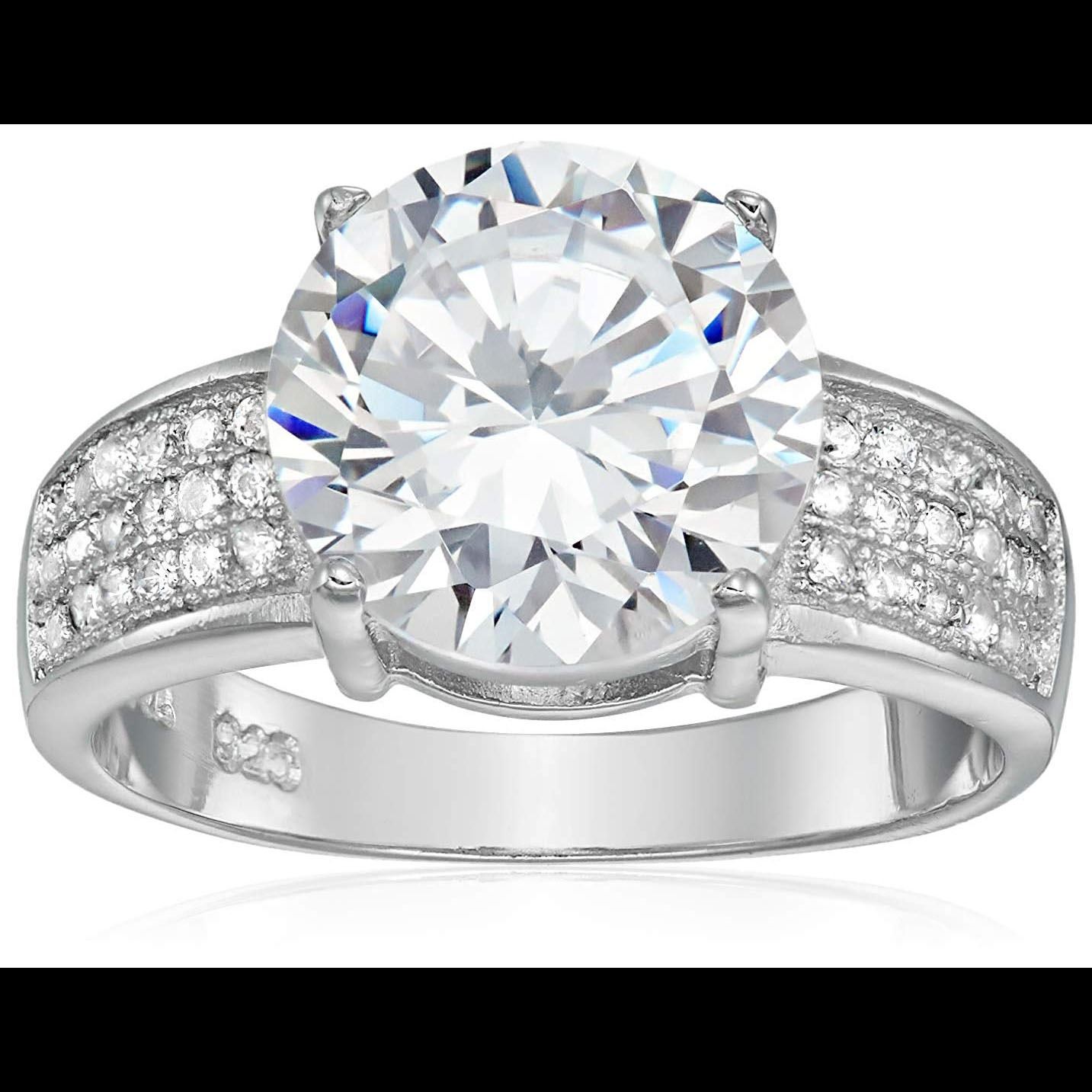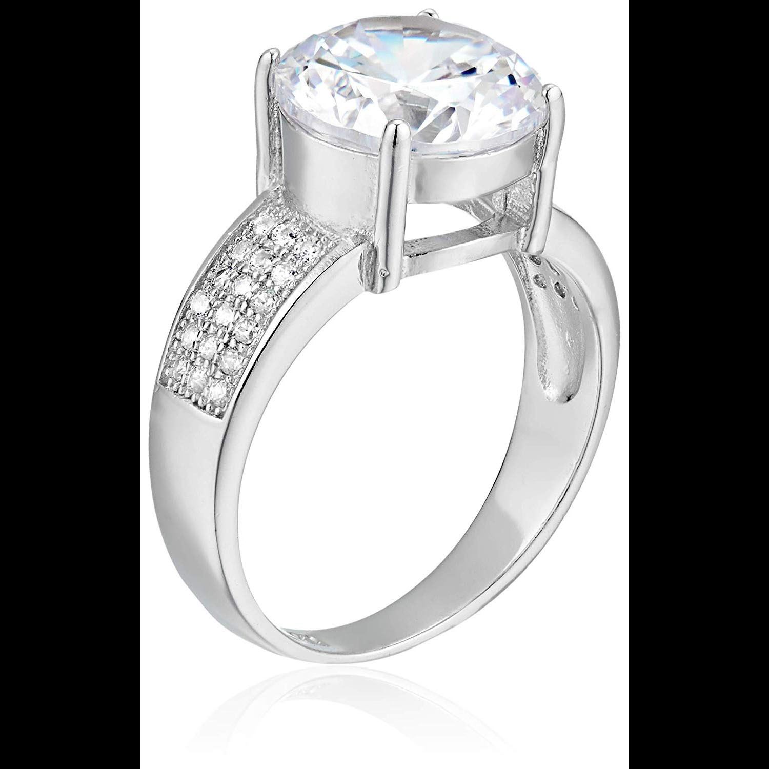 Sterling Silver mm Round Cut Engagment Ring With Pave band Size 9 . .. This is made of solid 925 Sterling Silver and each piece is carefully trademarked with the metal purity for certification. Each piece is stamped 925 and guarantees quality and craft. DESIGN & FINISH: Each piece is carefully designed from scratch by our design department and we present to you our finished product. We trust that you will greatly enjoy the quality of our product! PLATING & COLOR: This ring is coated with the highest quality of rhodium, giving you long lasting durability and color. This allows the product to maintain its colors over long periods of time. PACKAGING: Each precious piece is carefully packed in our beautiful gift box. We trust that you will really enjoy our product and it would make a great gift for all!