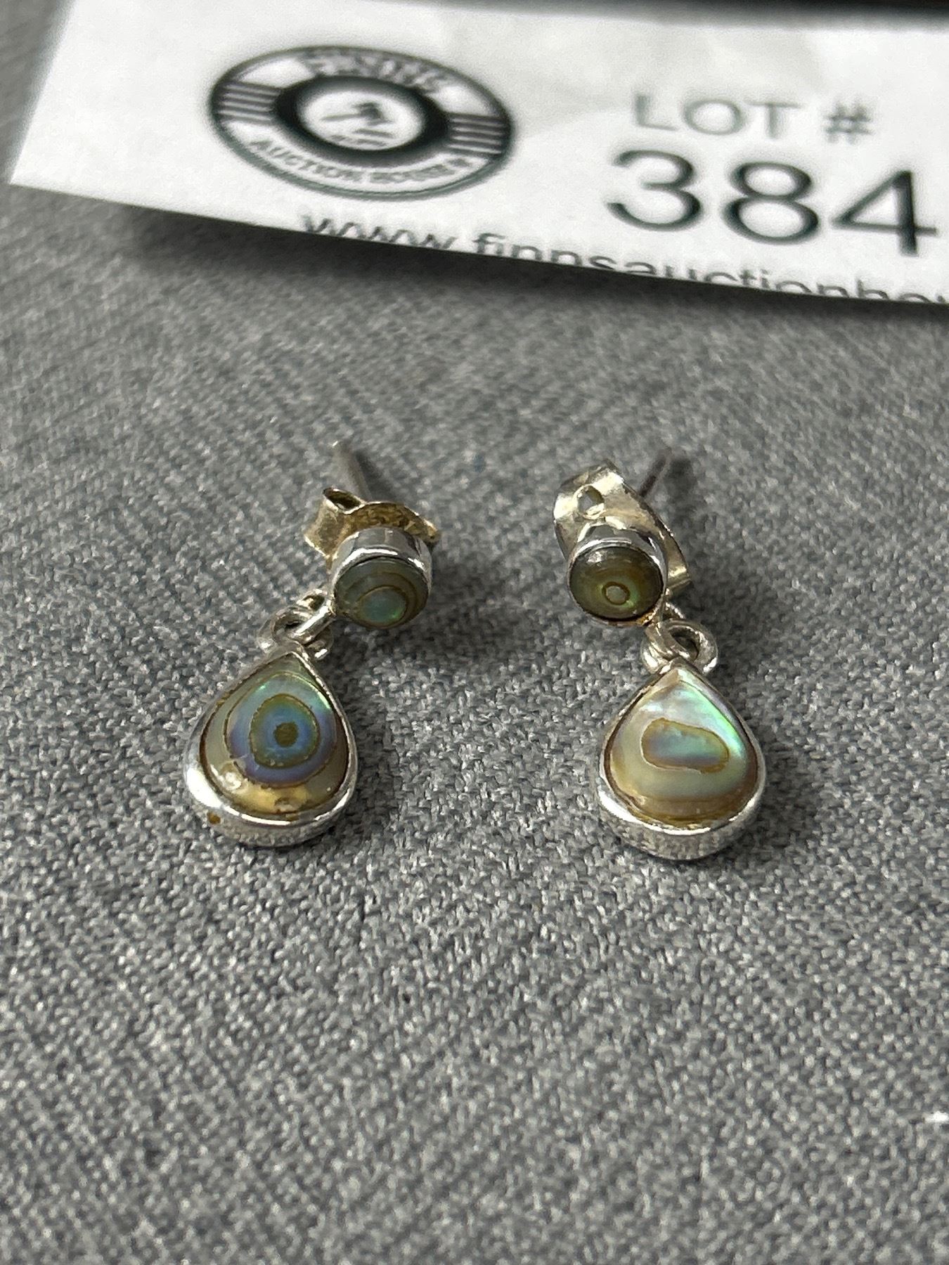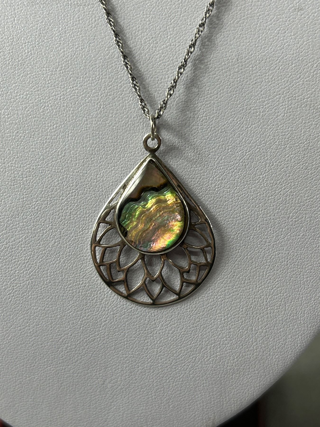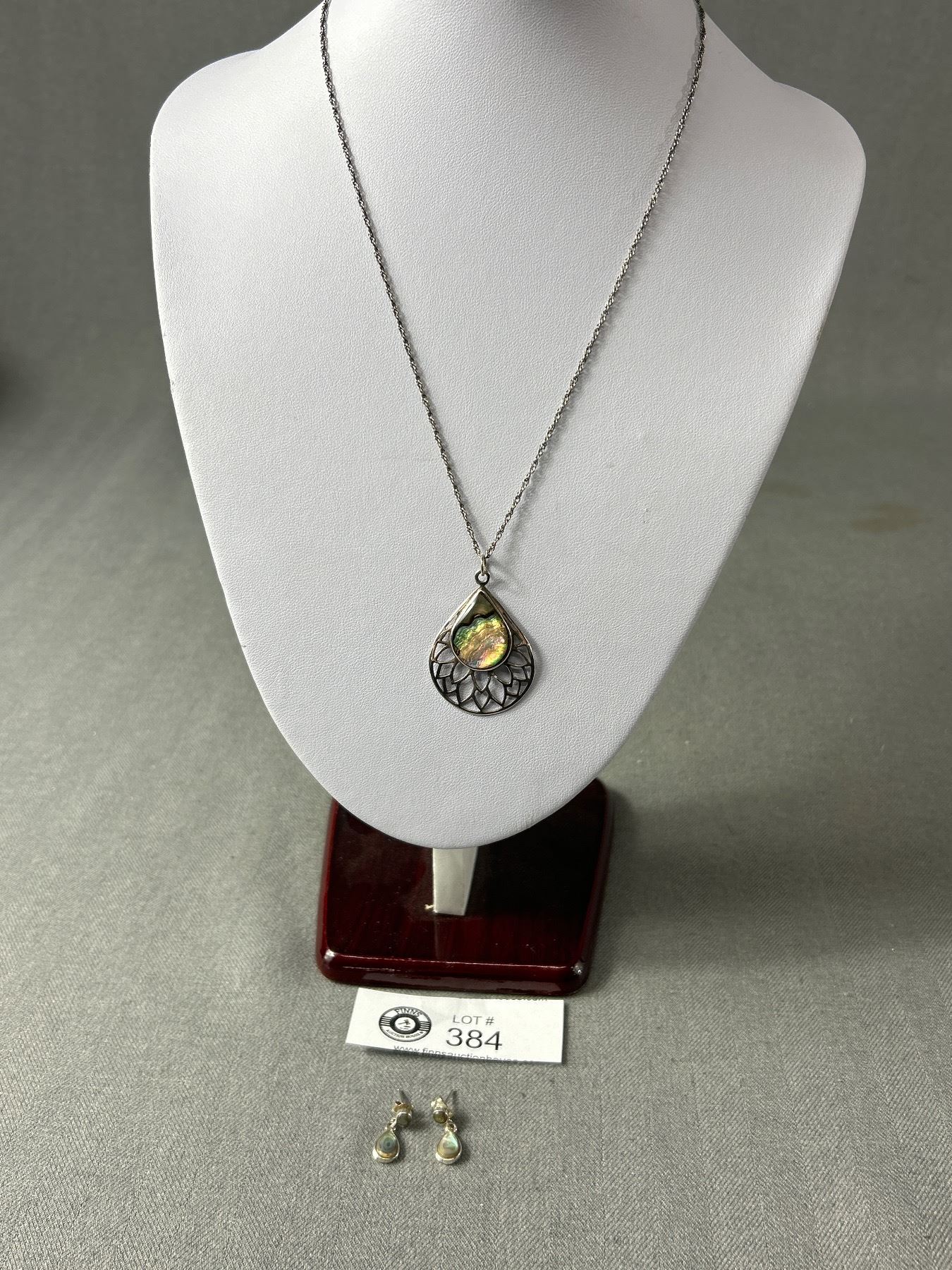 Sterling Silver w/ Abalone Shell Pendant Necklace & Pair Of 925 SS Abalone Shell Earring