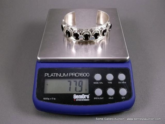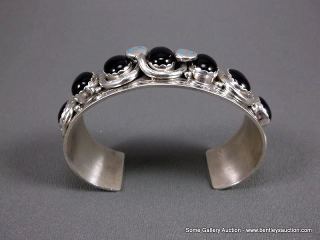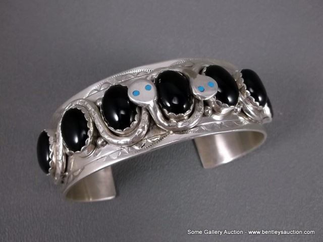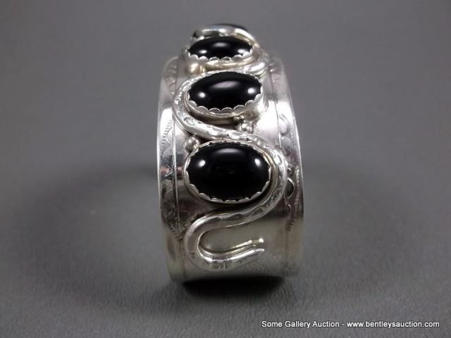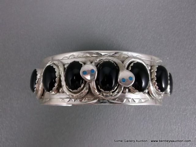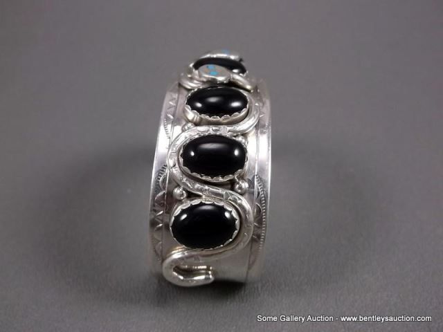 Sterling Silver w/ Black Onyx and Turquoise Snake Bracelet-Marked Effie C Weight: 77.9 Grams Retail:
