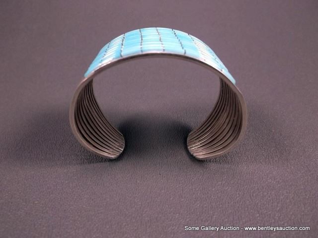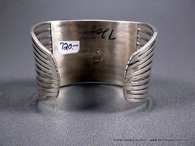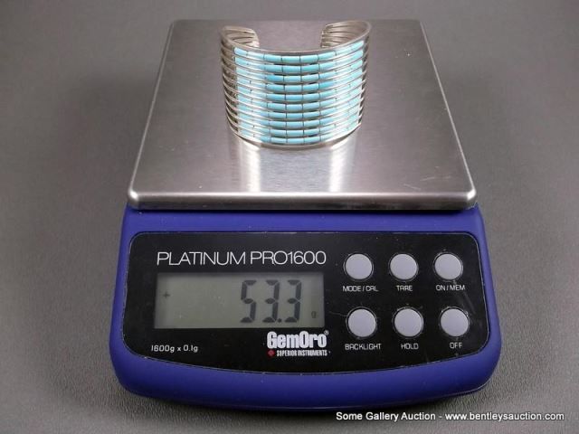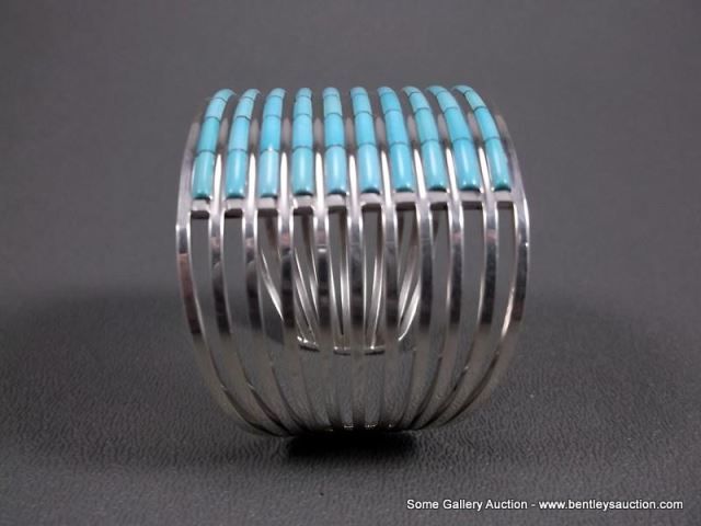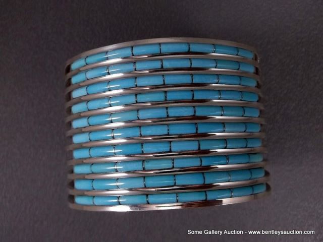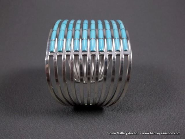Sterling Silver w/ Turquoise Row Bracelet-Marked ALW Weight: 53.3 Grams Retail: $720.00