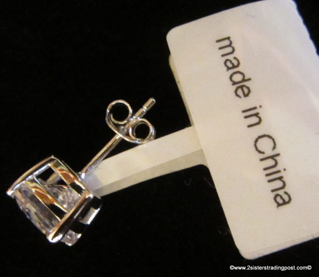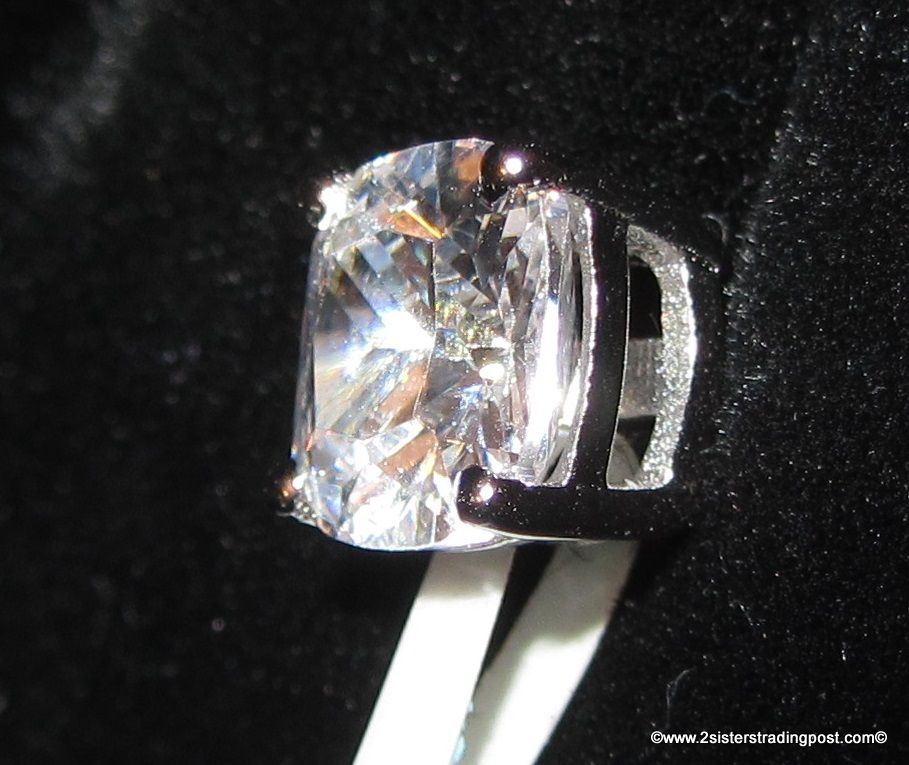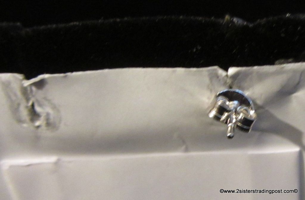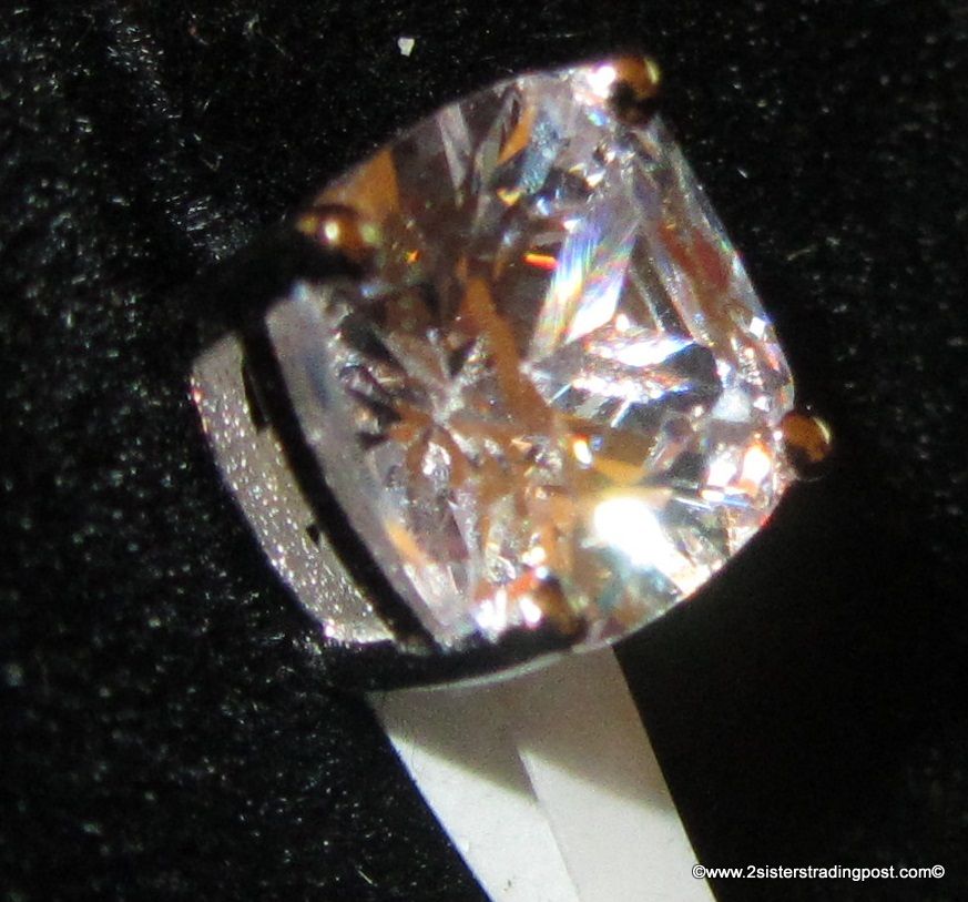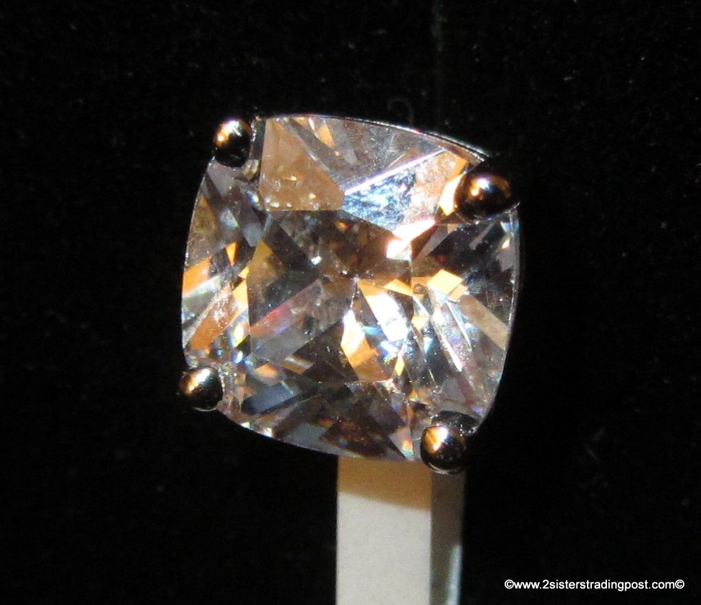 Sterling silver single stud earring with approximately 2.6 Carat square cubic zirconia. Stud ways approximately 1 g and is stamped .925 CZ.