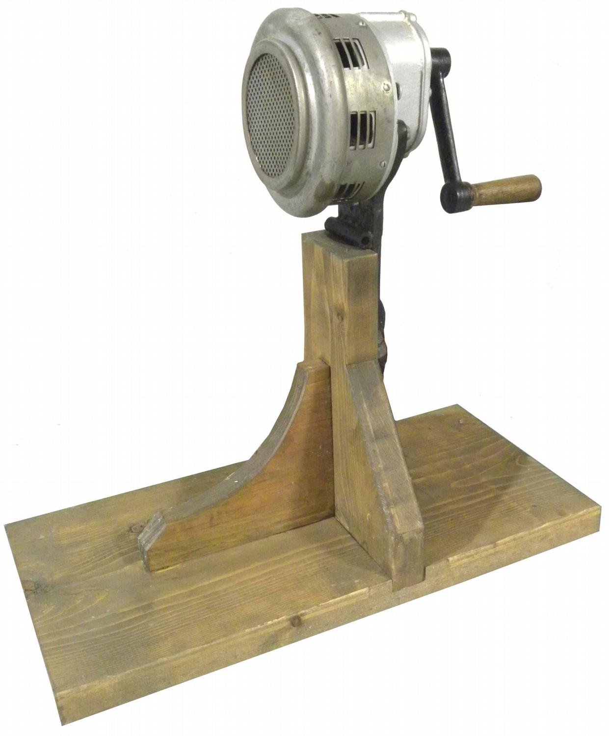 Sterling Siren Fire Horn. Mfg. by Inter-State Machine Products Co. Rochester, NY. Nickel plated brass on wood base. Siren diameter 7 1/2 inches.