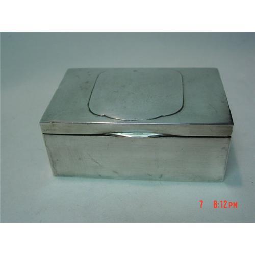 This is a wonderful sterling silver tobacco or snuff box by Theodore B. Starr Inc. It is lined in wood, probably cedar, but I can't tell from smelling it. It was made between 1900 - 1924. There are some dings on the outside. The wood lining to the lid is unglued, the bottom wood piece is cracked, and there are two pieces of wood which have come loose from the edging. The bottom is marked "Theodore B. Starr Inc.", "Sterling," and "5348." Overall, this box is in wonderful condition, considering its age!!!