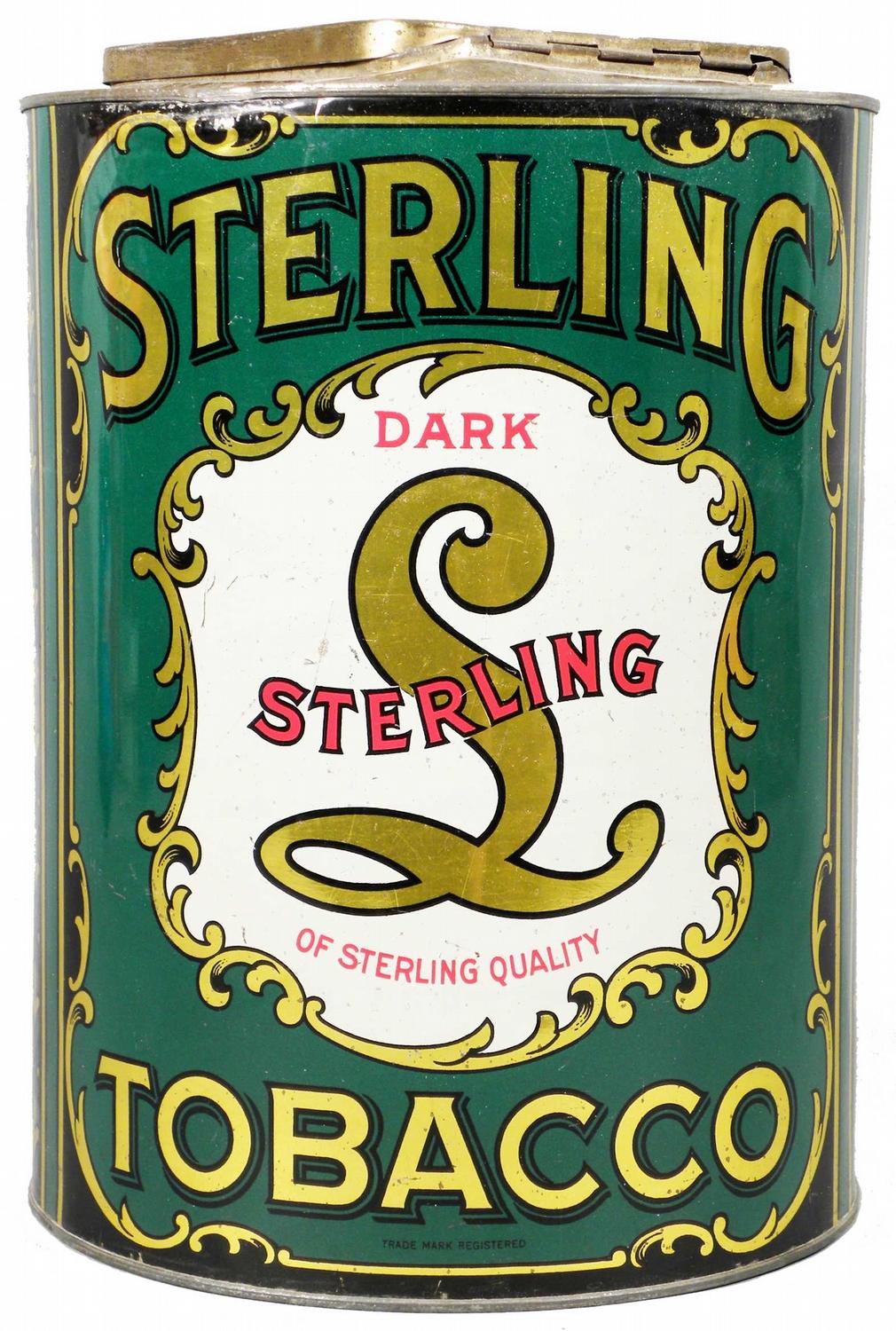 Sterling Tobacco Store Display Tin for Dark Fine Cut Tobacco Packages. Excellent condition. 8 1/2 inch diameter X 11 inches tall.