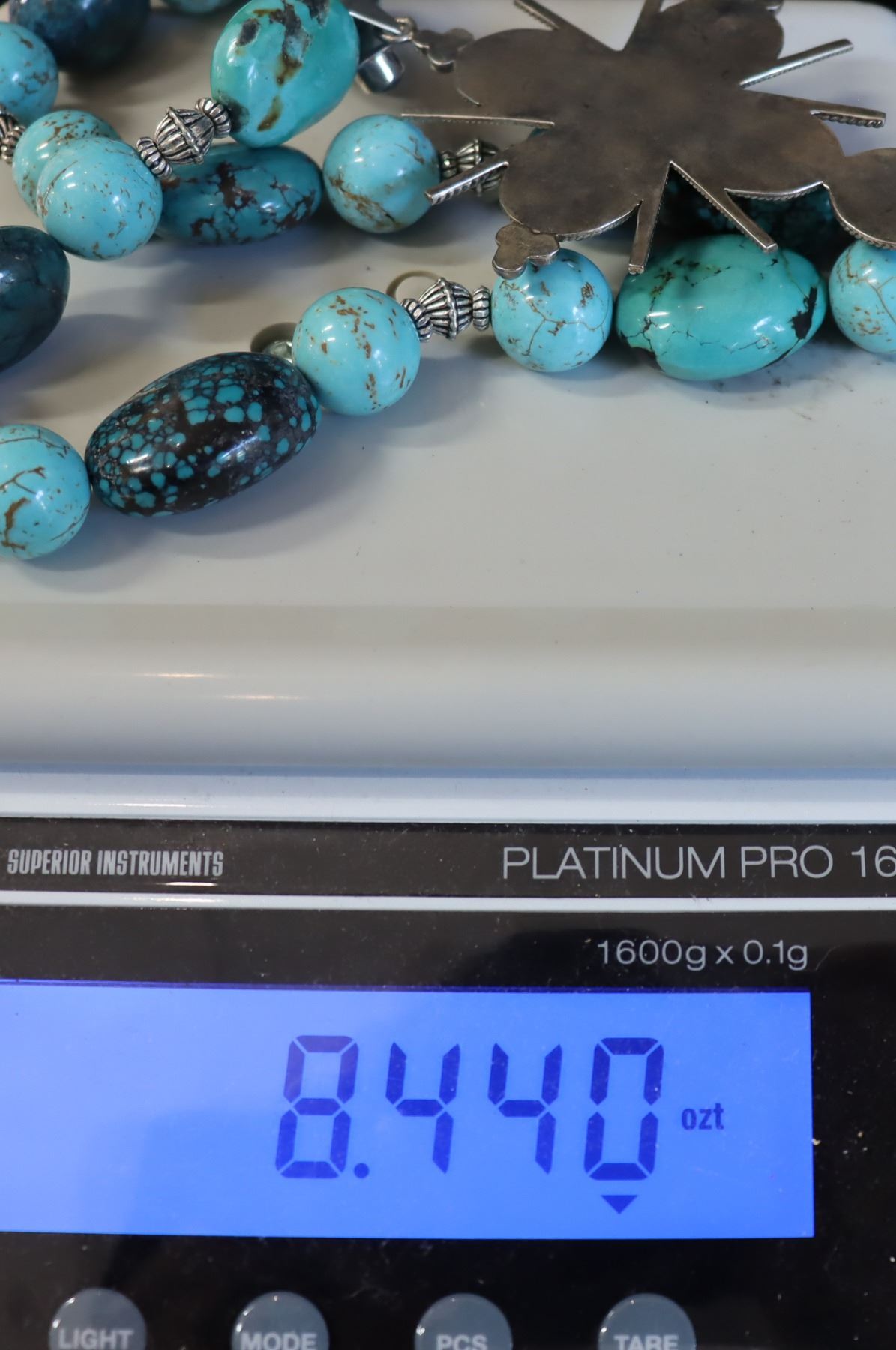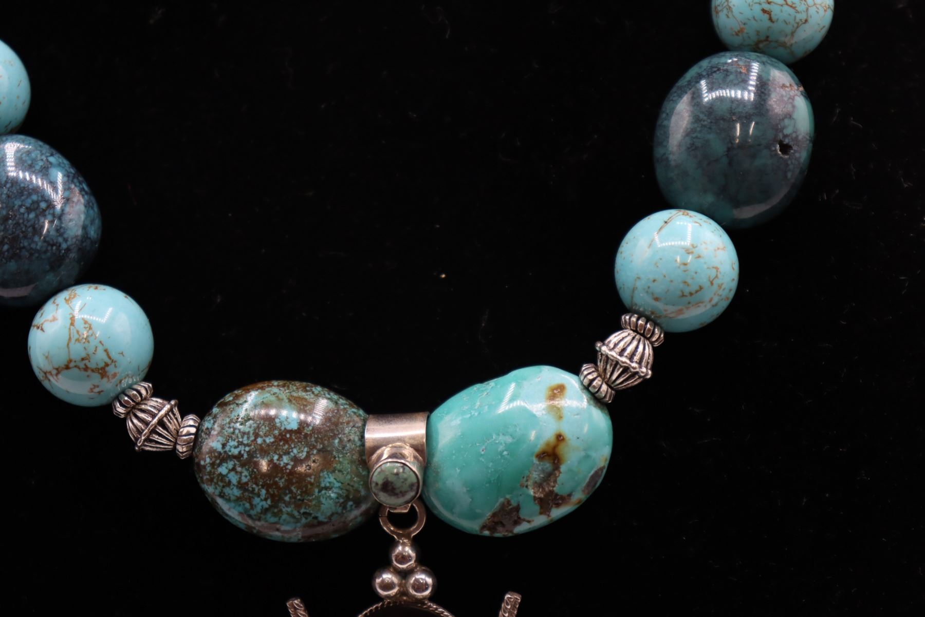 The turquoise stones are believed to have come from different mines such as Sleeping Beauty and Dry Creek.