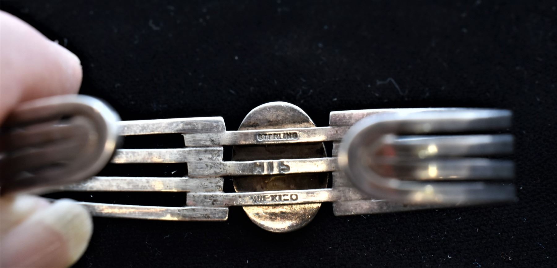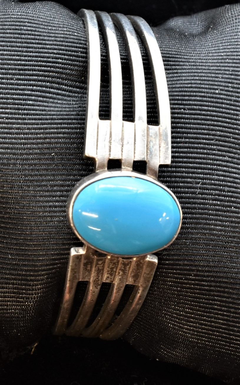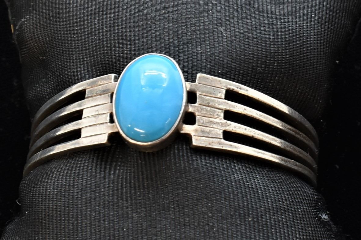 Sterling Turquoise Cuff Bracelet, inside measures 6.5'' x .75''W, stamped Mexico Sterling, total gram wt. of 26.16