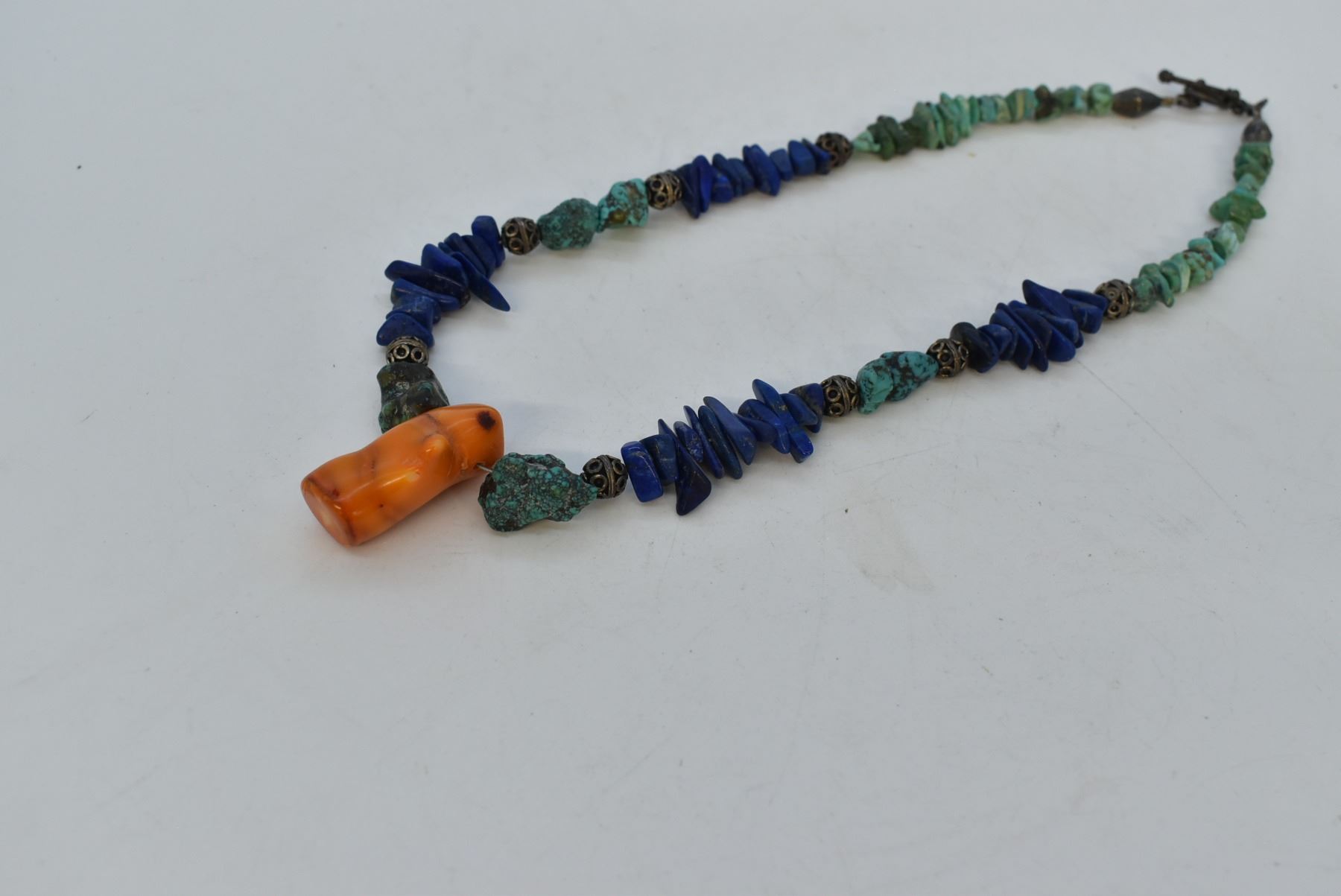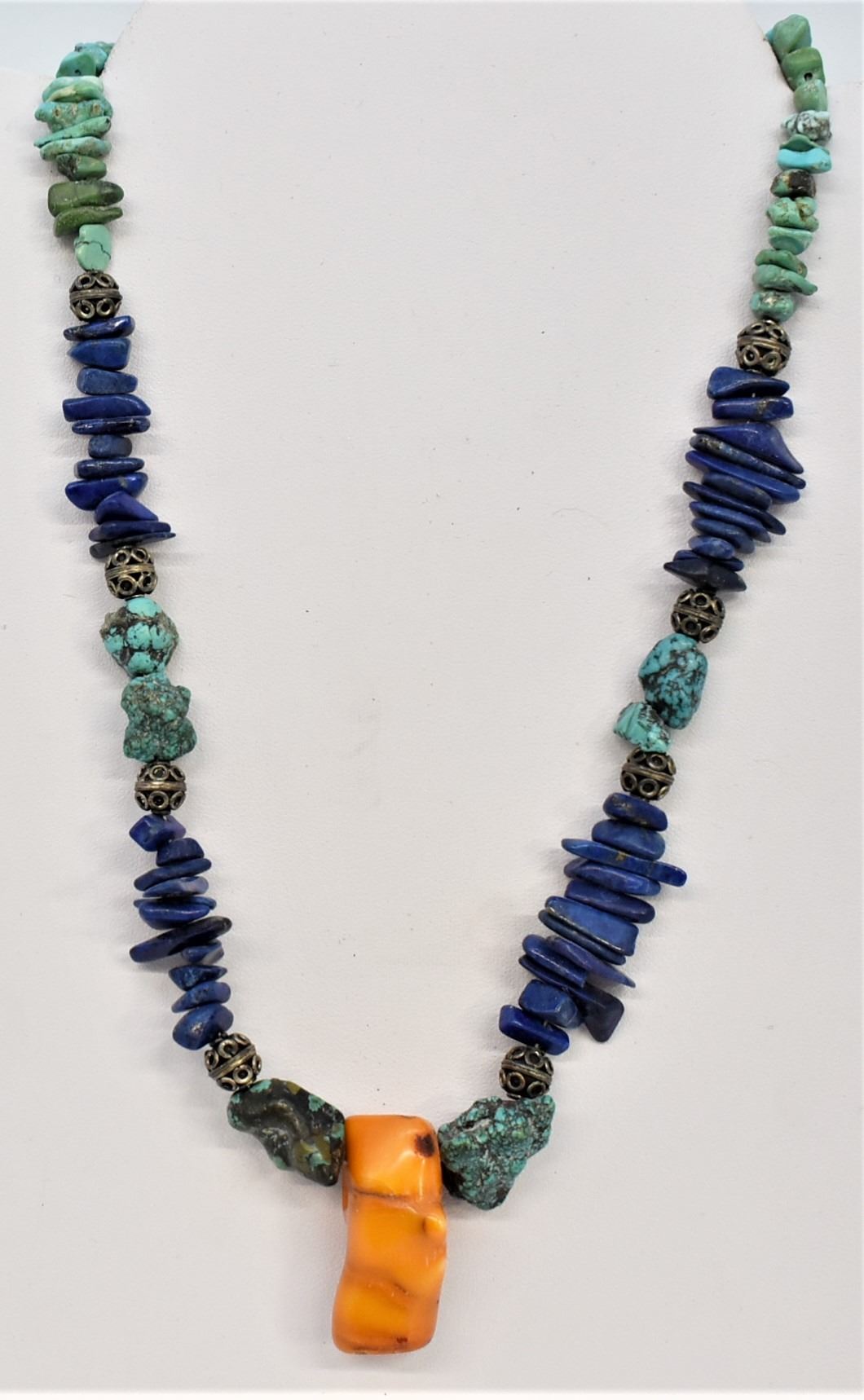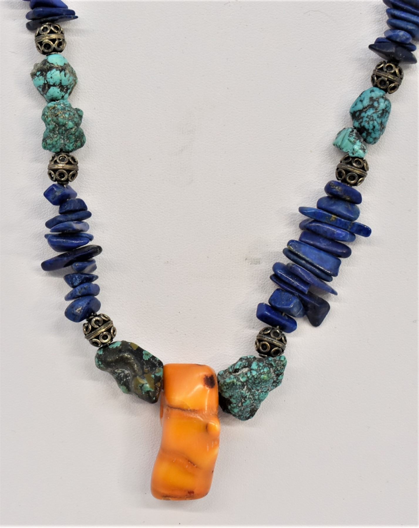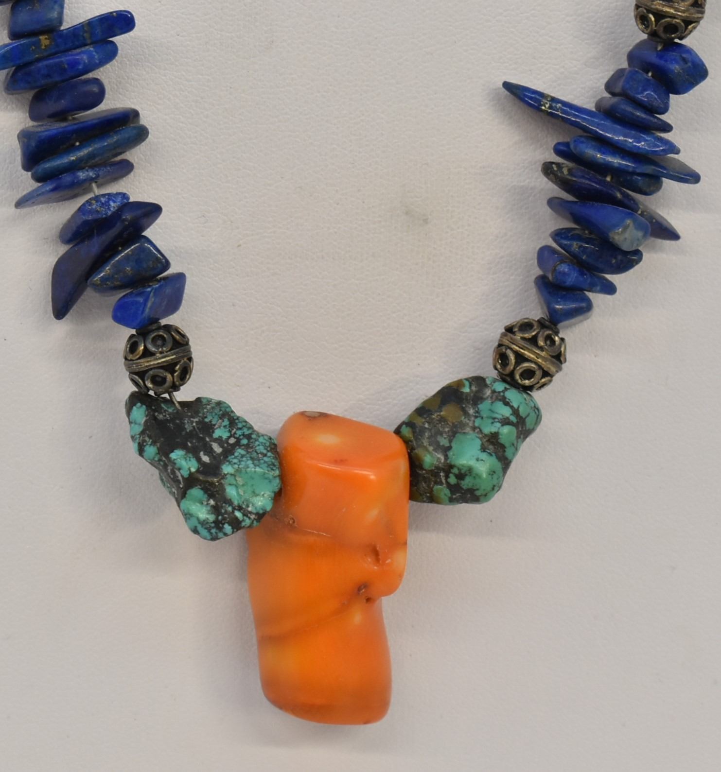 Sterling, Turquoise, Lapis, and Coral Necklace