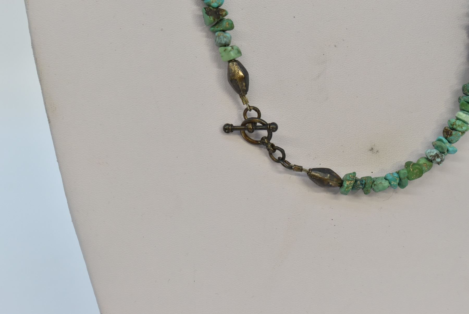 Vintage Estate Sterling, Turquoise, Lapis, and Coral Necklace, measures 18''L end to end, coral bead measures 1 3/8'' x .75'', toggle closure
