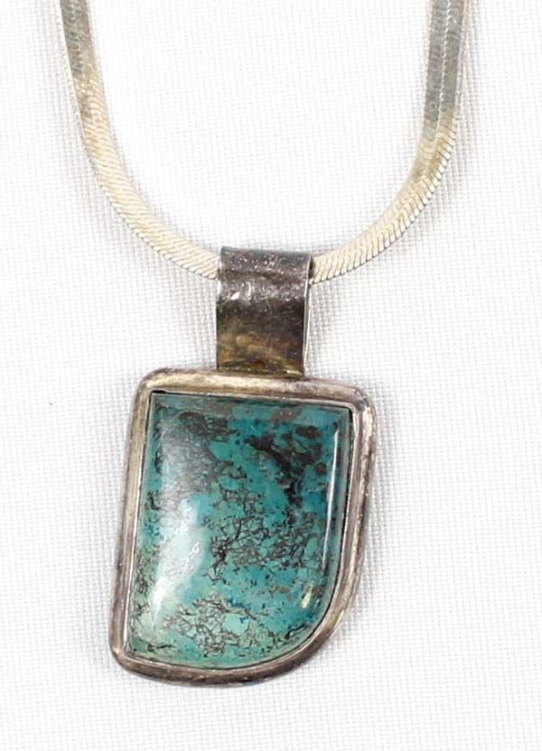 Sterling Turquoise Pendant Necklace, Italian sterling herringbone chain measures 18''L end to end, pendant measures 1'' x 1.5'' (which includes the bale), 32.41gtw
