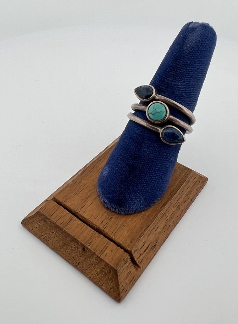 Nice coiled band, featuring Turquoise and Lapis Lazuli stones. Size 7 1/4