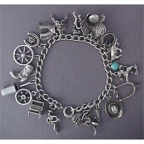 <tr><td>Title:Sterling WESTERN / COWBOY Theme Charm Bracelet,</td></tr>