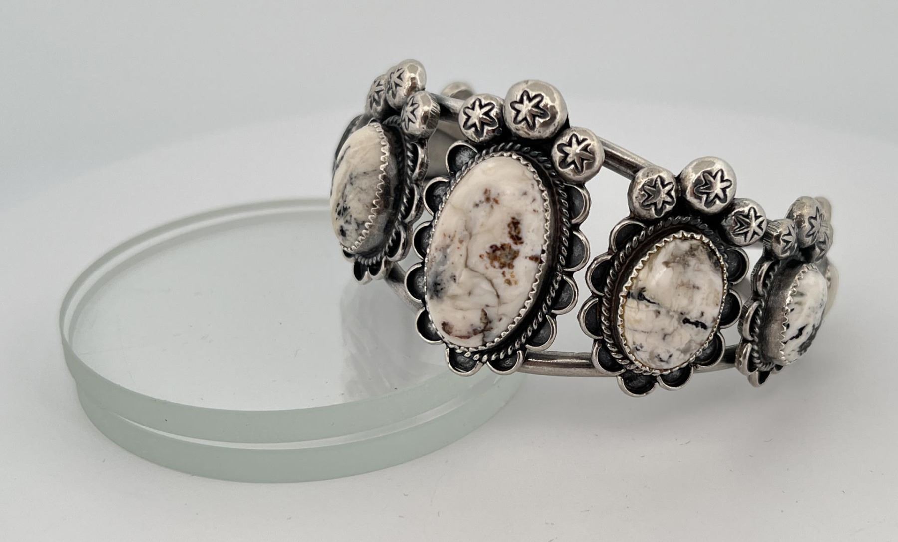 Superb quality. Sterling Silver, White Buffalo Turquoise. Made by Kenny Ray McNeilley Jr.