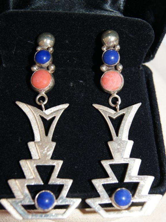 Sterling Zuni Southwest Gallery Earrings- Coral & Lapis