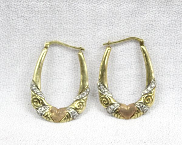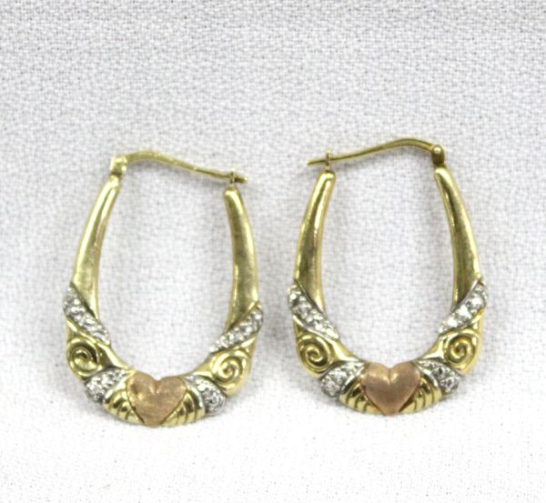 Sterling and 1/20 10Kt Gold Overlay Heart Hoop Earrings, measure 1.25''L x .75''W, 16.4g in total wt.