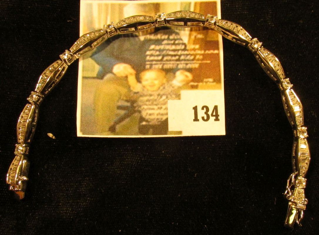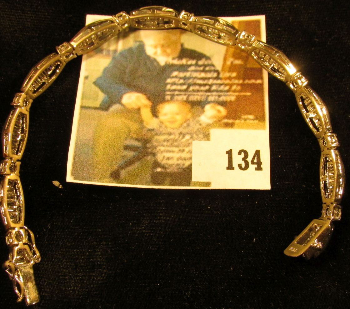 Sterling and CZ bracelet, features round and baguette CZs, 7 long closed, marked 925, 14.0 g / 9.0 dwt