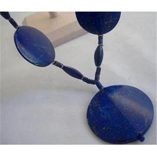 Brilliant Lapis Lazuli Medallions ranging in size of 1.5" in diameter to 2" in diameter. There is a total of seven (7) Lapis Lazuli round medallions and in between are Lapis Lazuli spacer beads each strung on sterling silver. Exquisite and unique!!