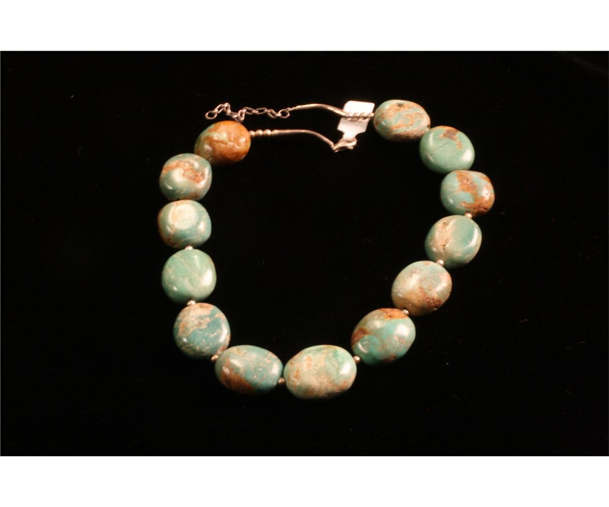 Sterling and Large Turquoise Nugget Necklace, 20" Long, 1 Inch Dia. Stones, -530015-