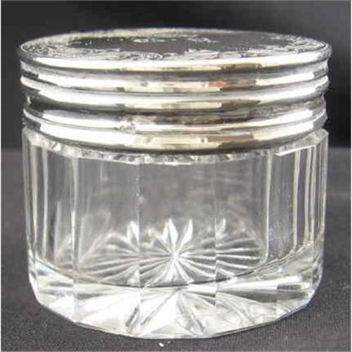 An English Sterling and Crystal Dresser Jar.</em></td>