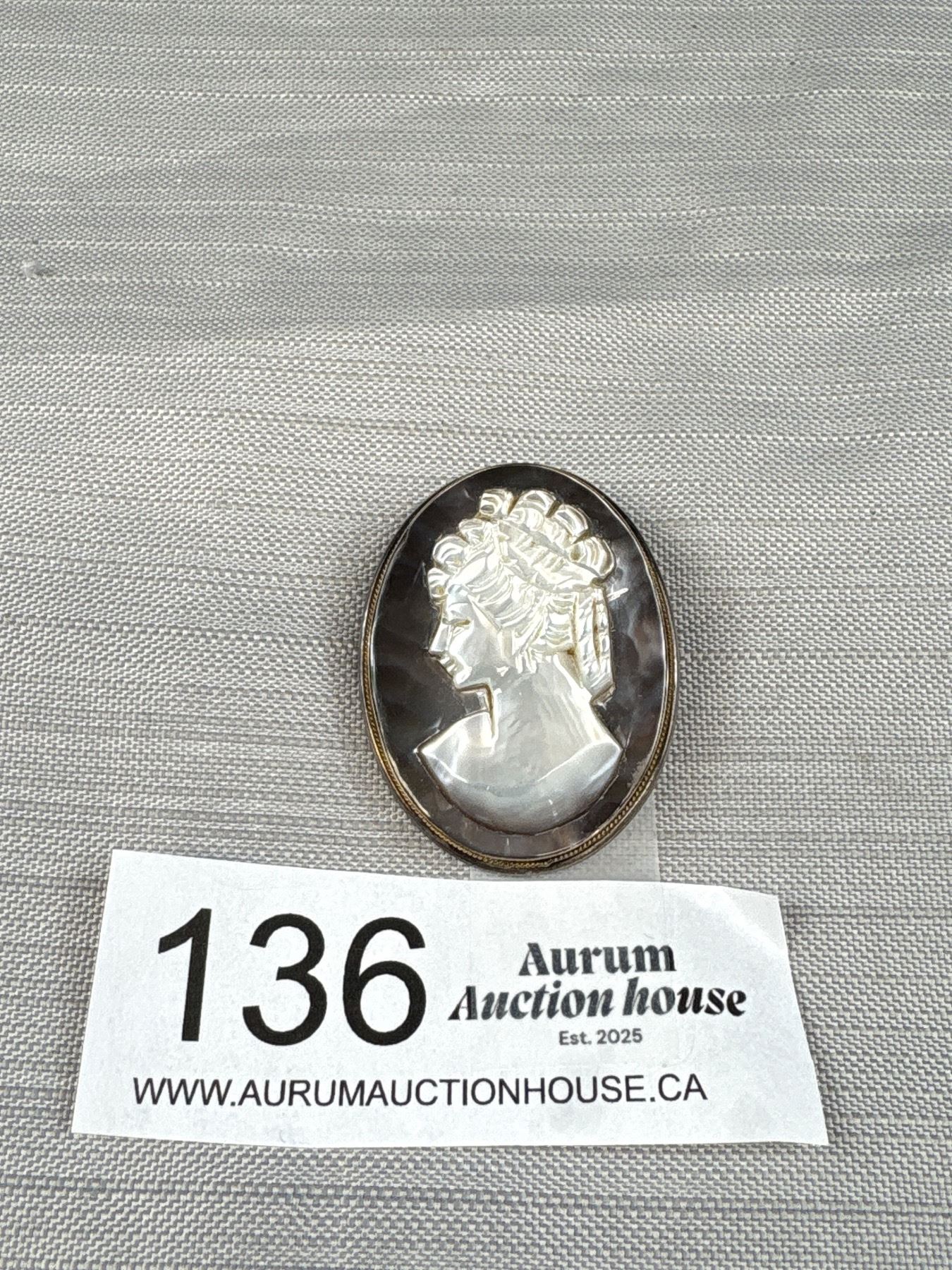 Sterling and Mother of Pearl Cameo Brooch/Pendant