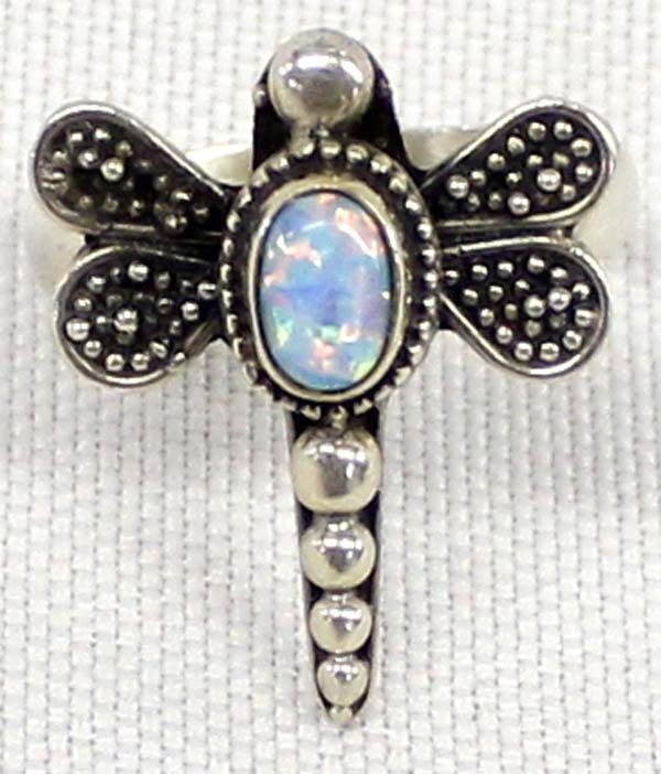 Sterling and Opal Dragonfly Ring, Size 5.5, measures 7/8''L, Sweet!