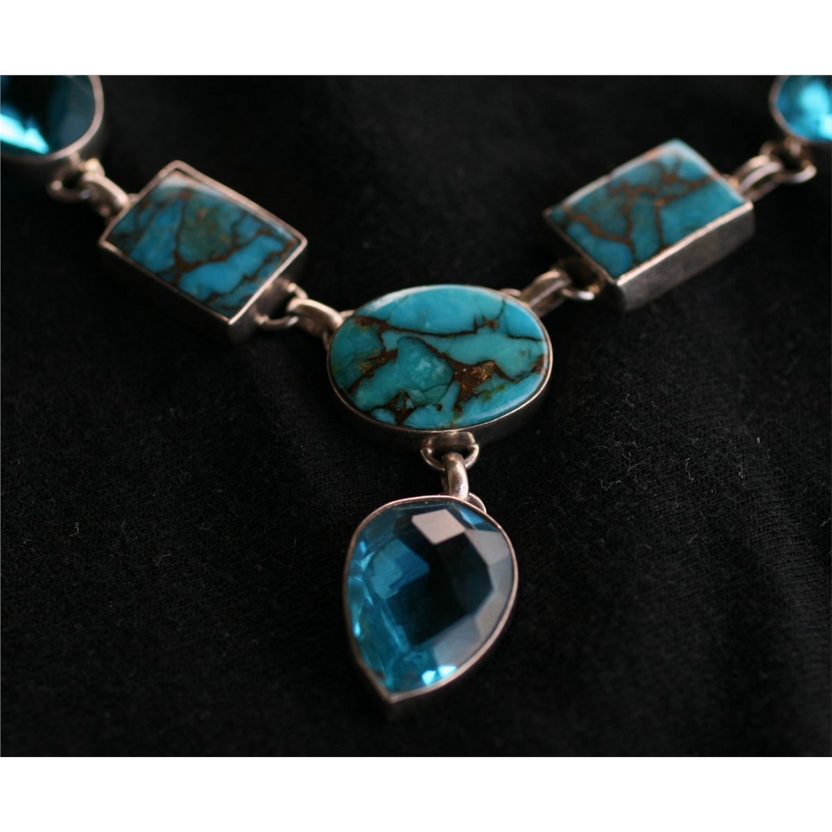 Sterling silver multi piece necklace with turquois and aquamarine colored stones, -530850-