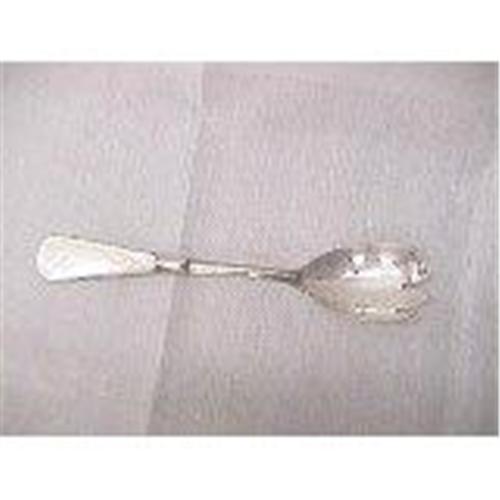 This is A very beautiful classical designe Sterling Silver and Mother of Pearl handle and Silver plated fork-spoon serving piece in very good condition and on the band of the handle is marked Sterling and there is another marked on Spoon. L:9"