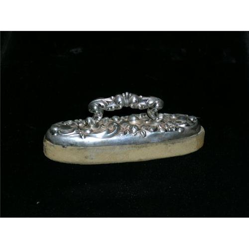 Incredible detail to this sterling nail buff. Marked, though through the years has worn. The buff is still perfectly attached, and all in all a beautiful piece. Any questions please contact Three's Company Thanks!!