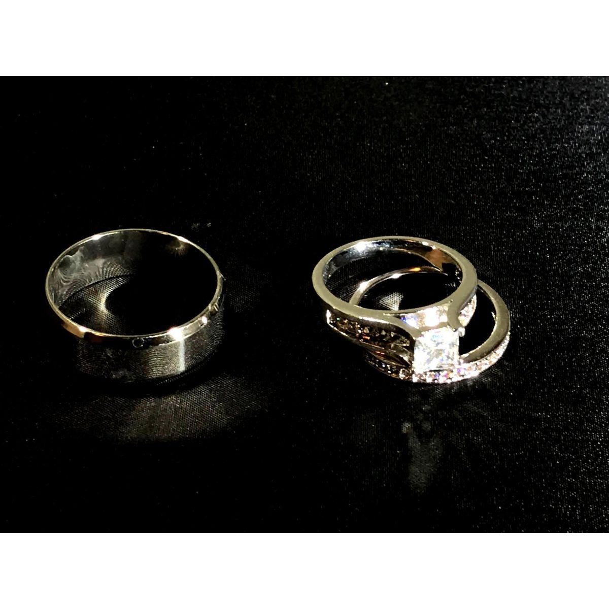 S925 SILVER BAND PROMISE HALO HIS AND HERS ENGAGEMENT/WEDDING RINGS SET RING SIZE WOMENS 7 MENS 11 - #349B-349-119