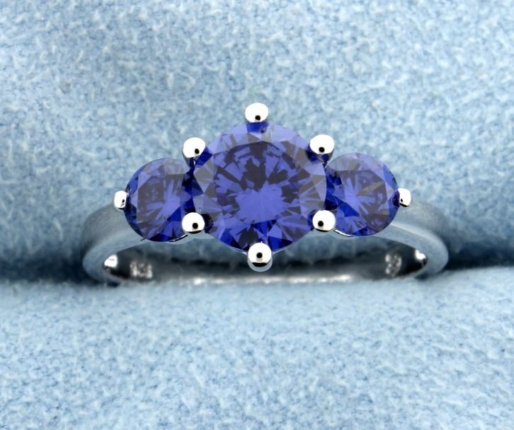 Beautiful and classic, this sterling silver ring has three round lab Tanzanite gemstones. The center is 7mm and the two side gemstones are 4.5mm each. Size 8 3.0g
