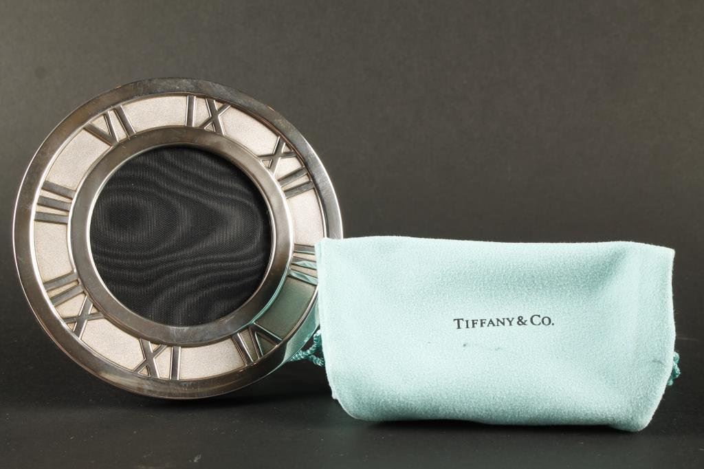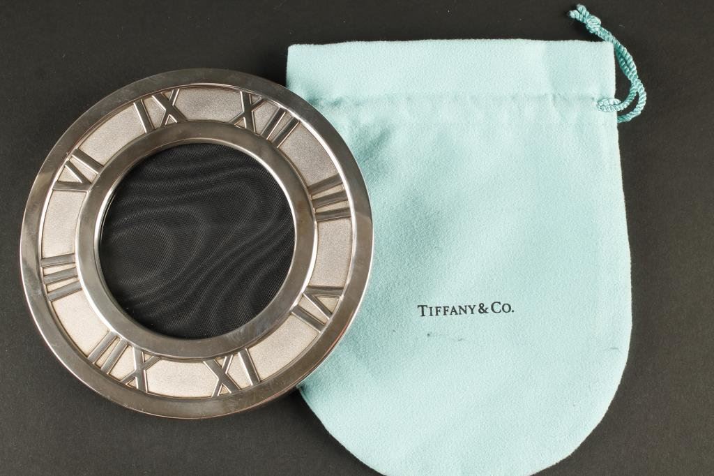 Sterling silver Tiffany signed atlas design out of production picture frame with suede Tiffany marked bag. Est.: $200-$400