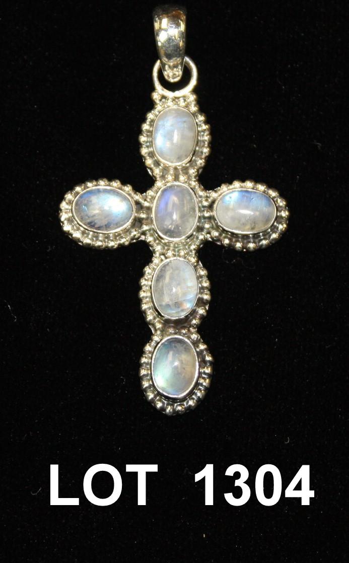 Sterling silver cross set with 6 moonstone. Est: $75 - $100