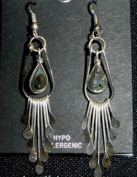 Sterling silver hook earrings with 9 silver dangles and shell inlay stones in center, 2 in length, ½ in width