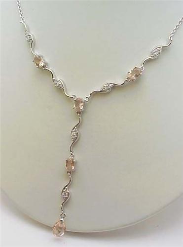 Sterling silver necklace with cubic zirconia and champagne color stones 16"