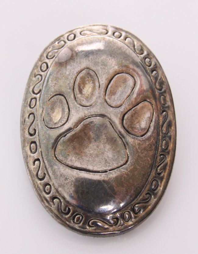 Sterling silver pendant of a bobcat paw print. SIZE: see attached ruler photo. Photos are part of the description representing the condition report and can be used for authentication prior to the sale date. Pangaea Auctions urges Bidder's to view all attached photos in detail.