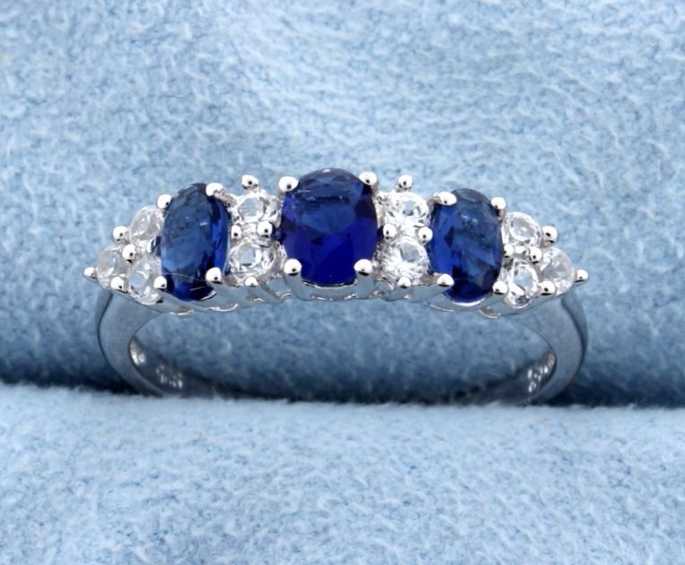 Gorgeous sterling silver ring with stunning lab Sapphire gemstones and sparkling white sapphires. Size 8 2.0g