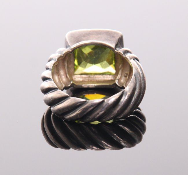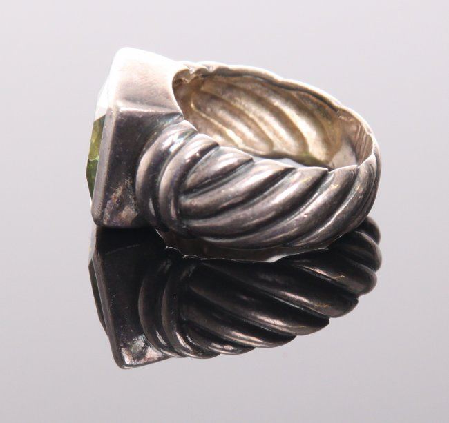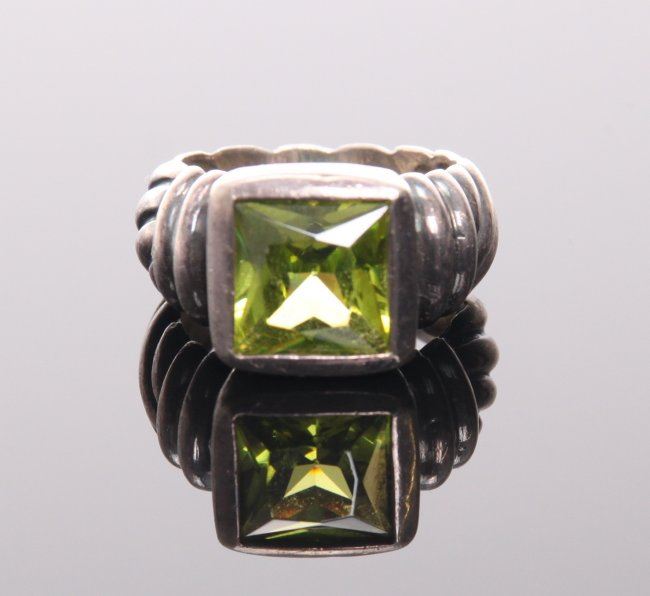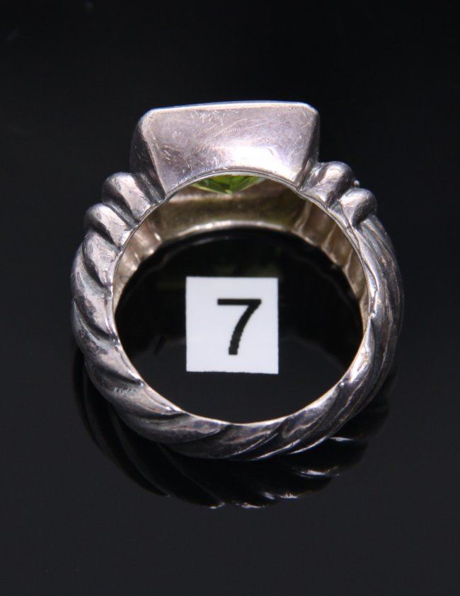 Sterling silver ring with peridot stone. SIZE: see attached ruler photo. Photos are part of the description representing the condition report and can be used for authentication prior to the sale date. Pangaea Auctions urges Bidder's to view all attached photos in detail.